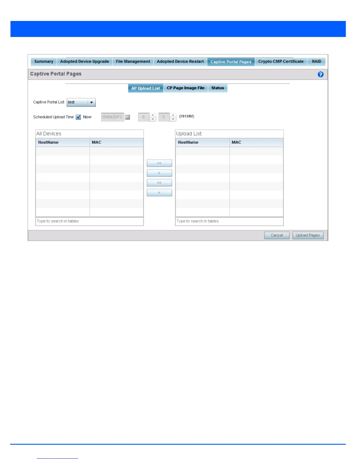 8. Select Upload Pages to upload the captive portal pages to the selected devices.