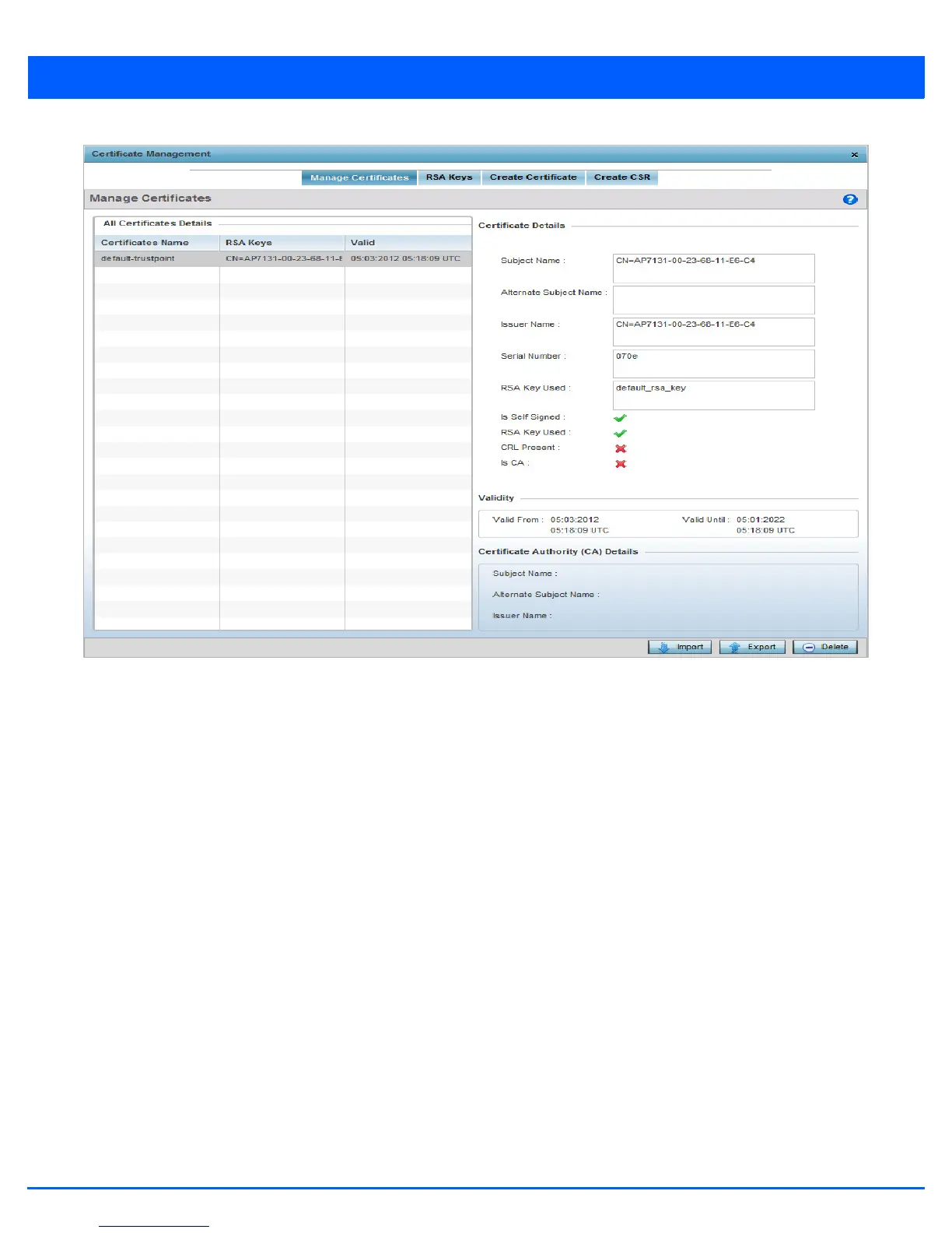 3. Refer to the Certificate Details to review certificate properties, self-signed credentials, validity period and CA