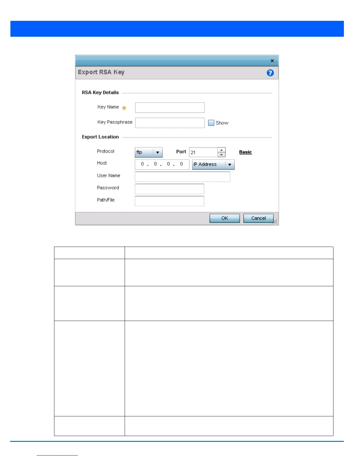 Protocol Select the protocol used for exporting the RSA key. Available options include: