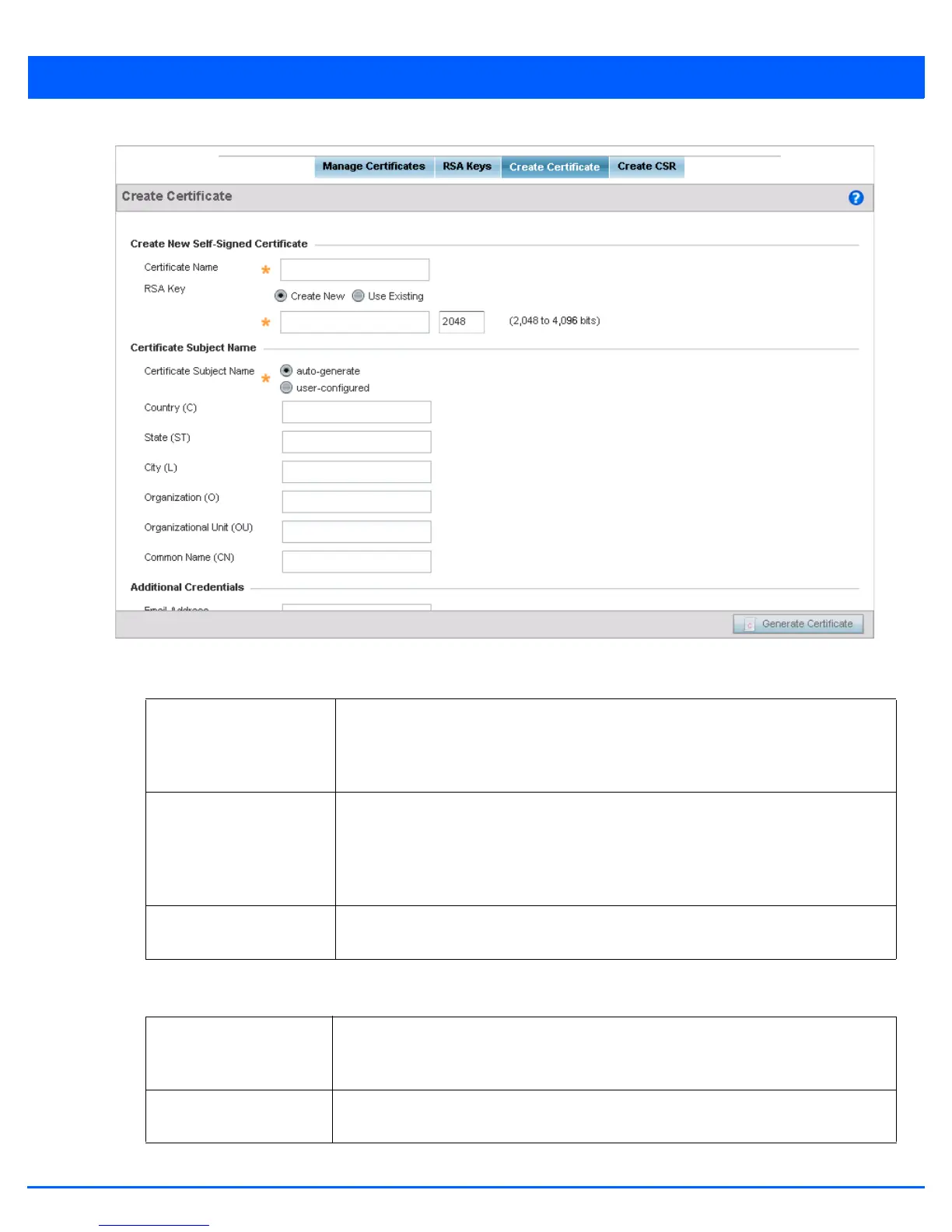 Certificate Name Enter the 32 character maximum name assigned to identify the name of the trustpoint