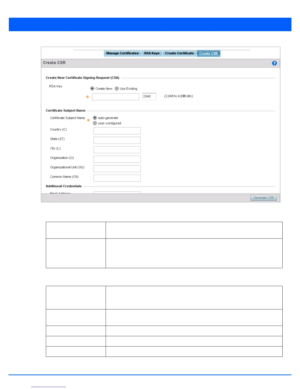 Certificate Subject Name Select either the auto-generate radio button to automatically create the certificate's