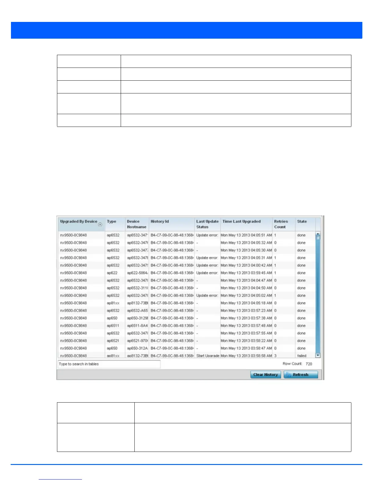 Upgraded By Device Displays the MAC address of the controller, service platform or peer model access point