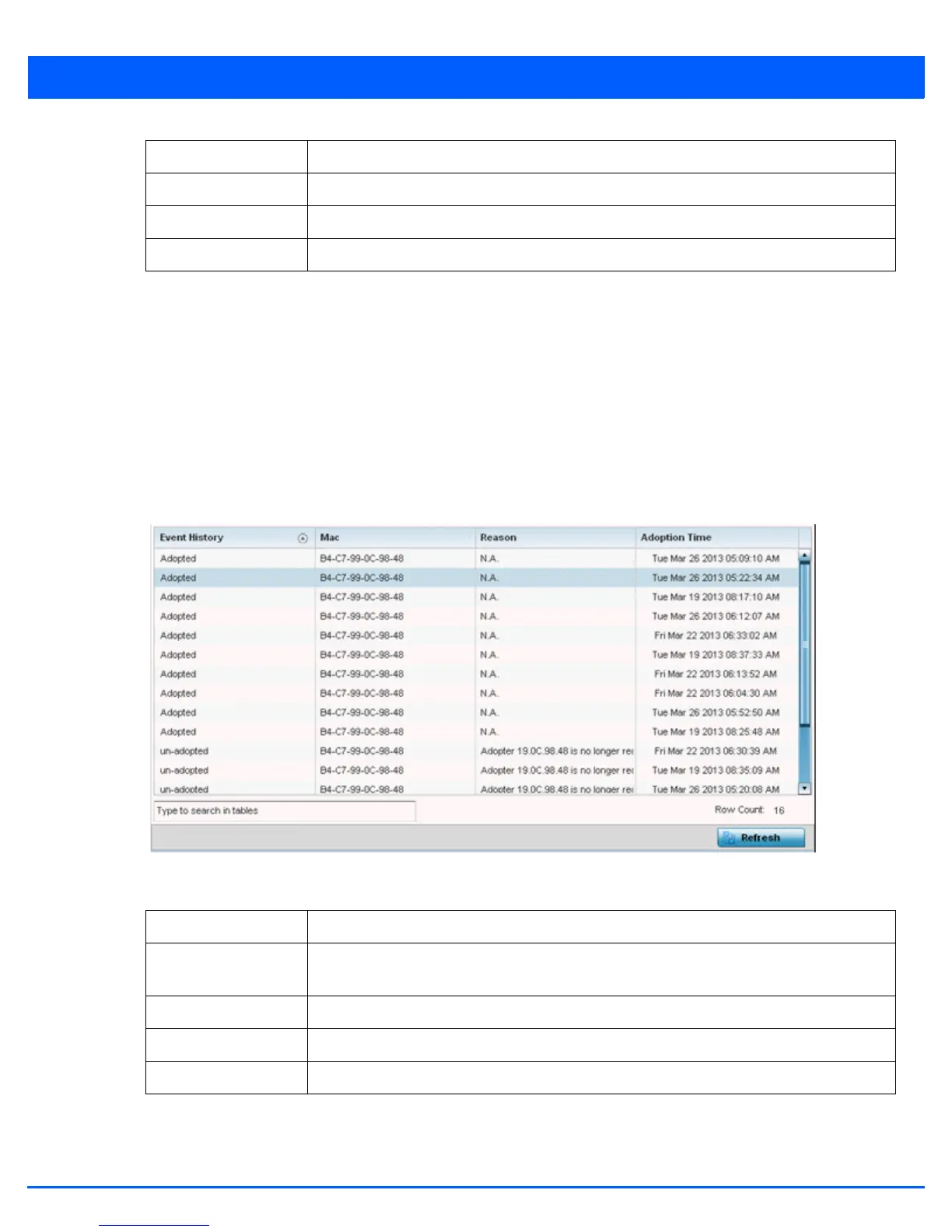 Event History Displays the self adoption status of each access point as either Adopted or un-adopted.