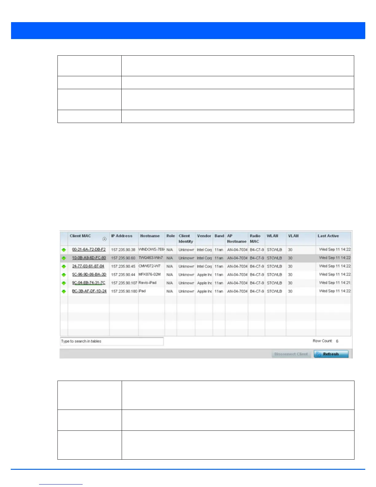 Hostname Displays the hostname (MAC addresses) of connected wireless clients. The hostname displays