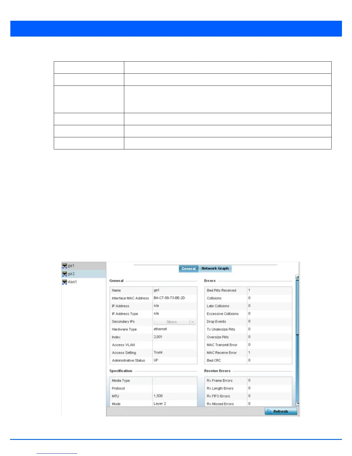 The Interface screen provides detailed statistics on each of the interfaces available on the selected access point. Use this
