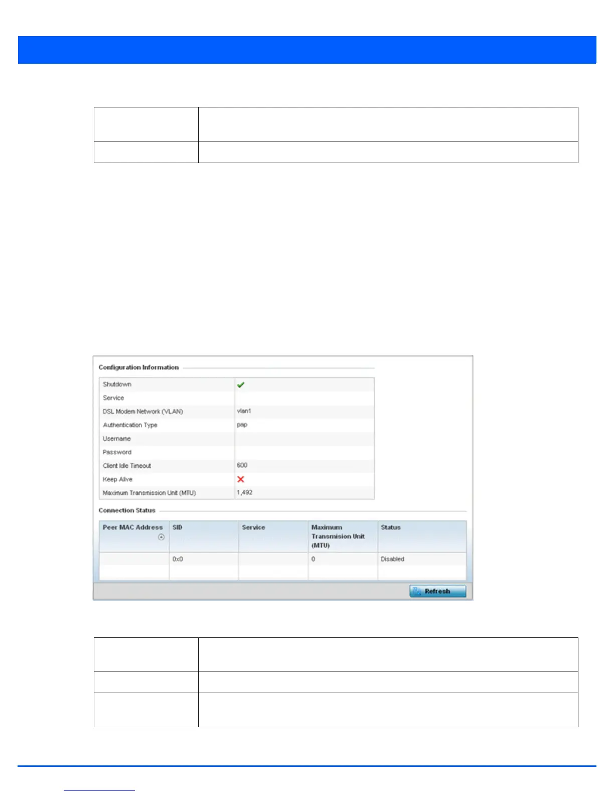 The PPPoE statistics screen displays stats derived from the AP’s access to high-speed data and broadband networks. PPPoE
