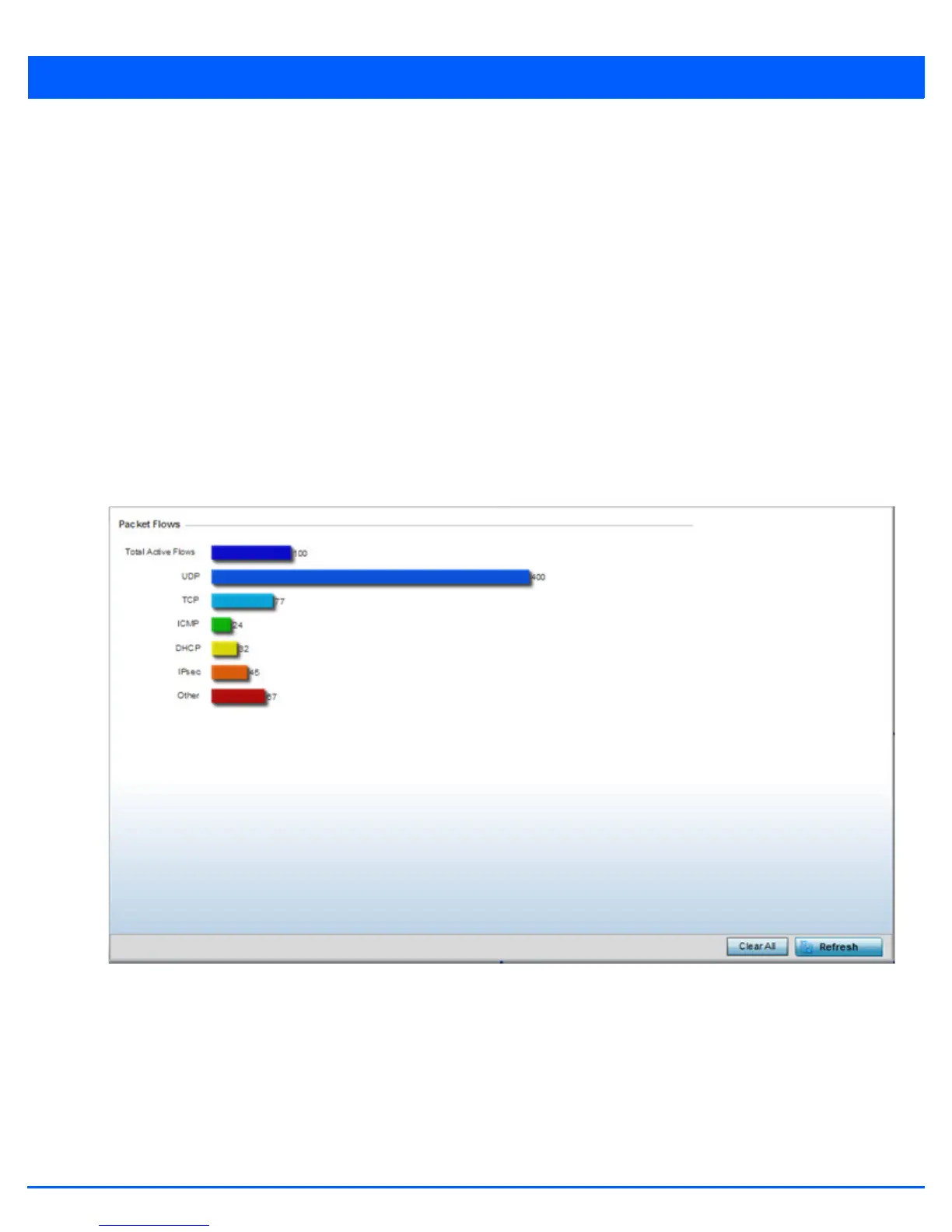 The Packet Flows screen displays data traffic packet flow utilization. The chart represents the different protocol flows