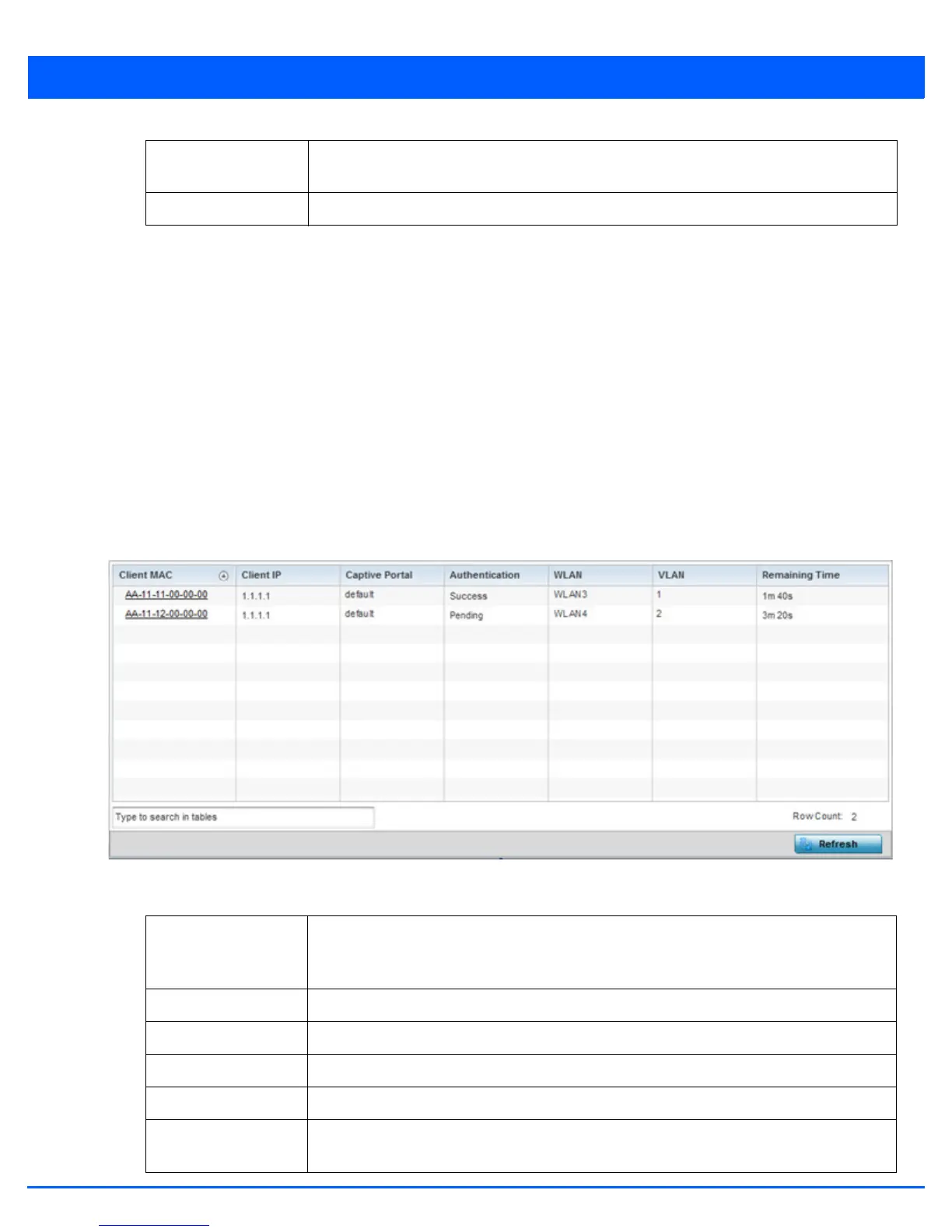 Client IP Displays the IP addresses of captive portal resource requesting wireless clients.
