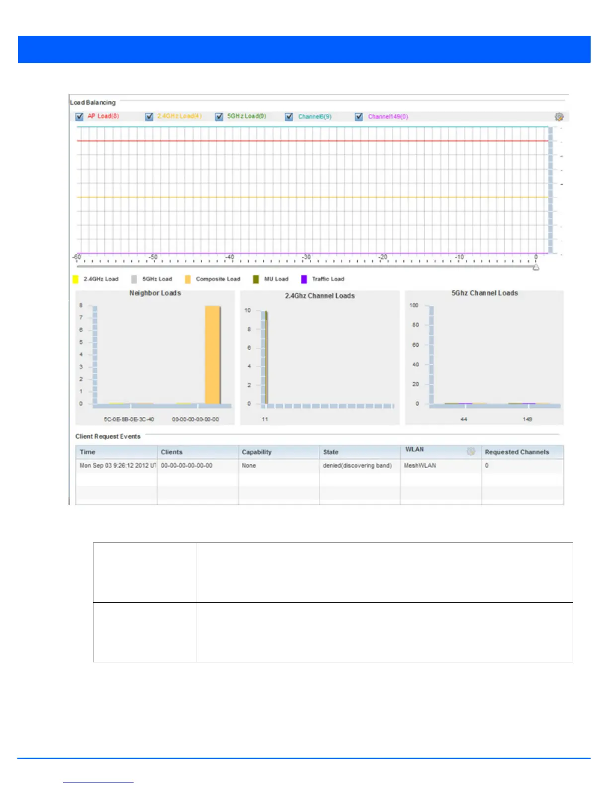 AP Load, 2.4GHz Load, 5GHz Load, and Channel. The graph section displays the load