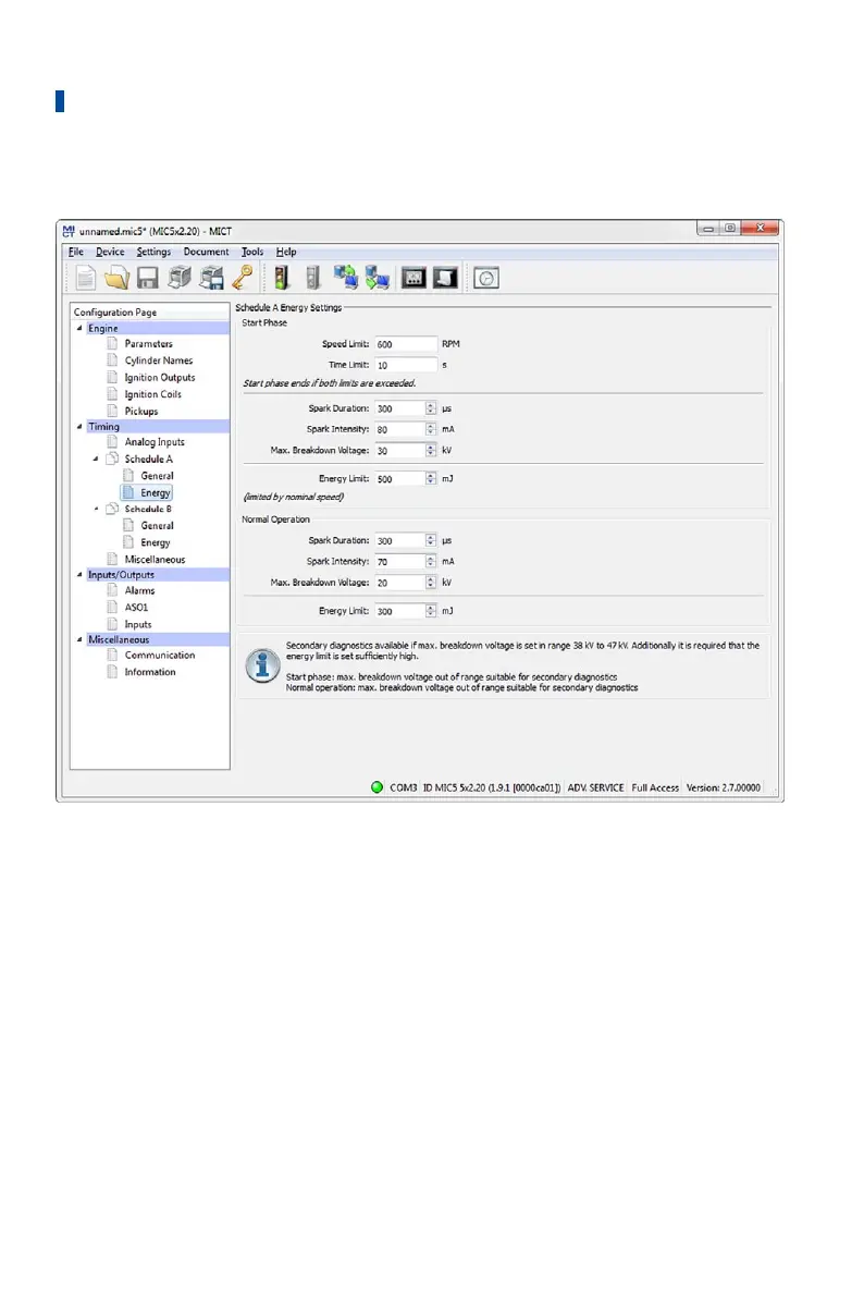 used by the ignition controller. Make the energy settings the same as for the start phase.