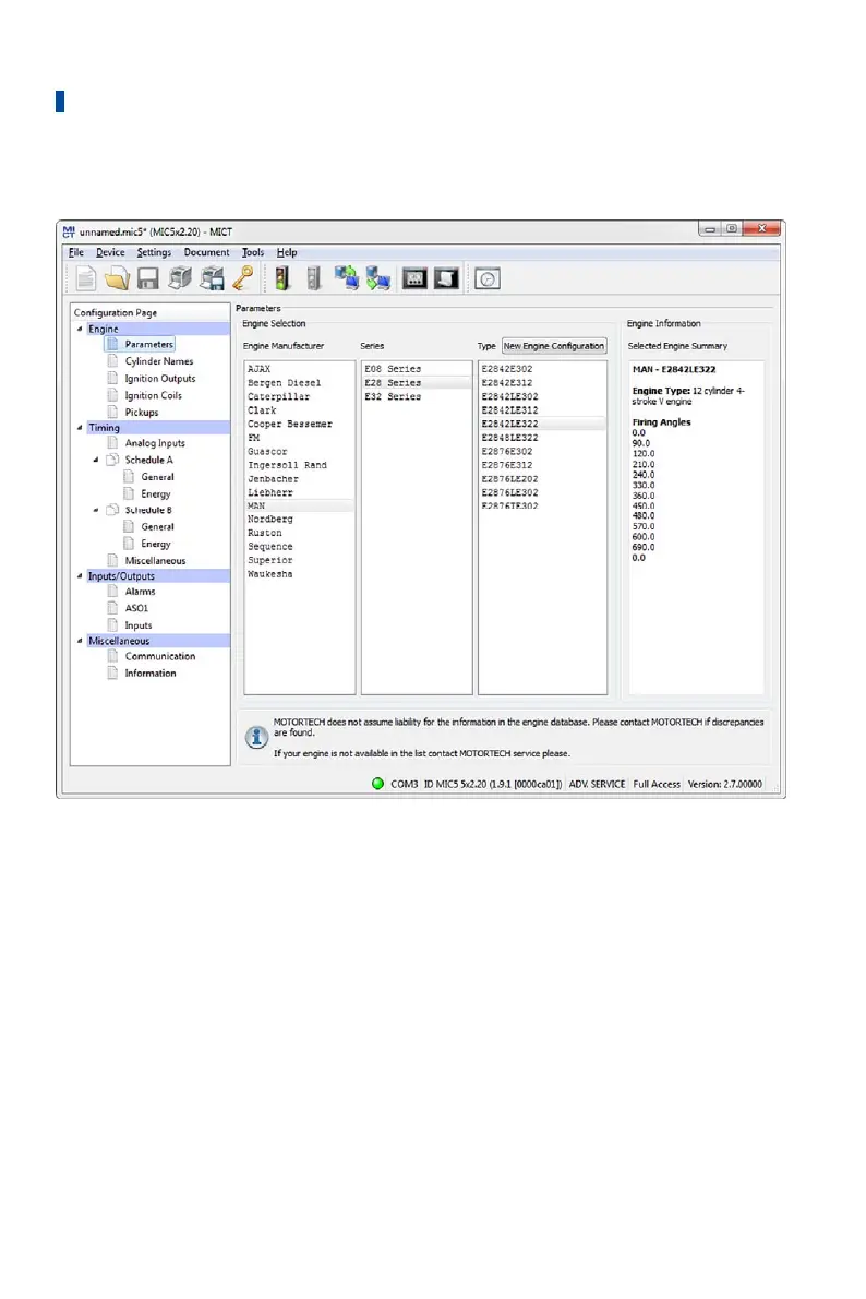 Select the desired engine manufacturer, series, and type by clicking on the corresponding fields.