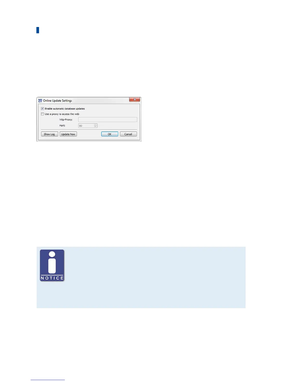 setting, the online update is activated and is executed daily (if an internet connection is
