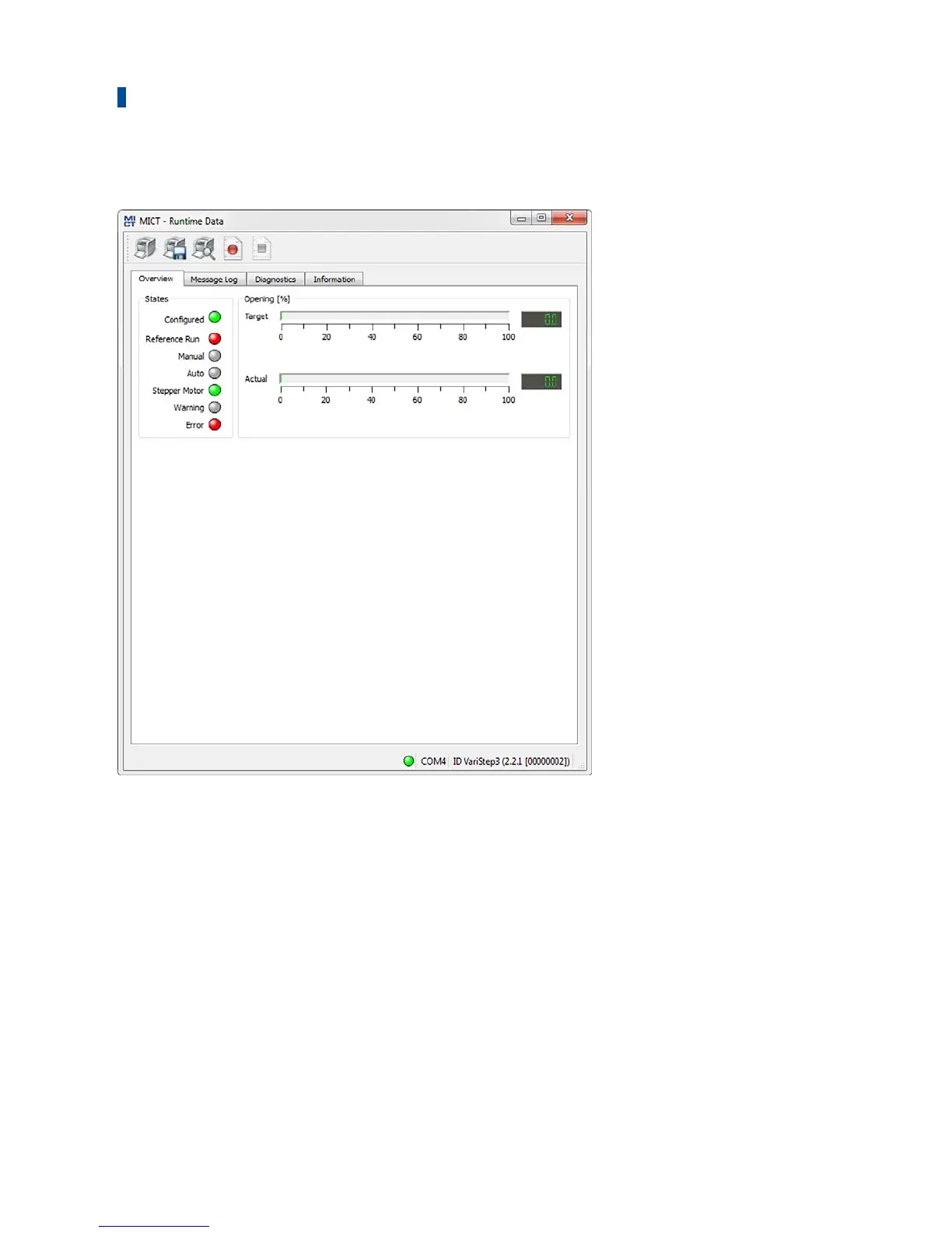 – red: The stepper motor driver has no or an invalid configuration. An existing configuration