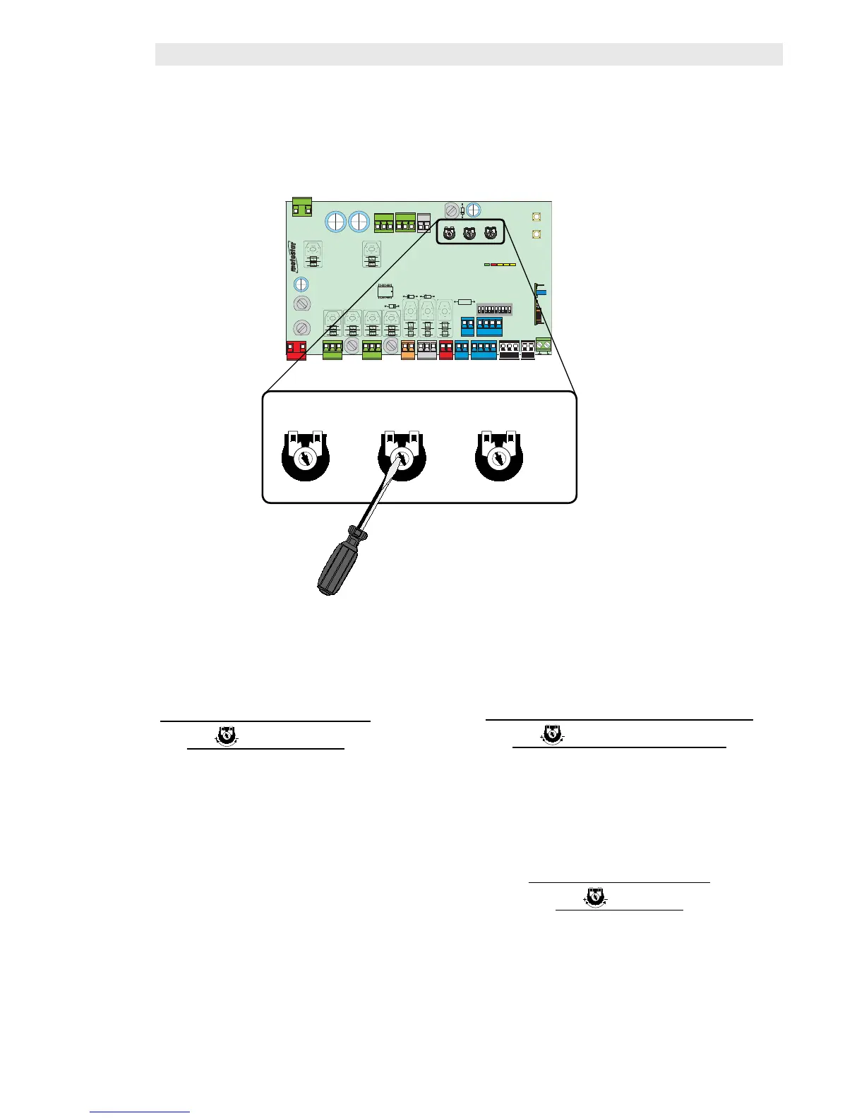 To adjust the trimmers, use a small screw driver by turning it clockwise (+) to increase or