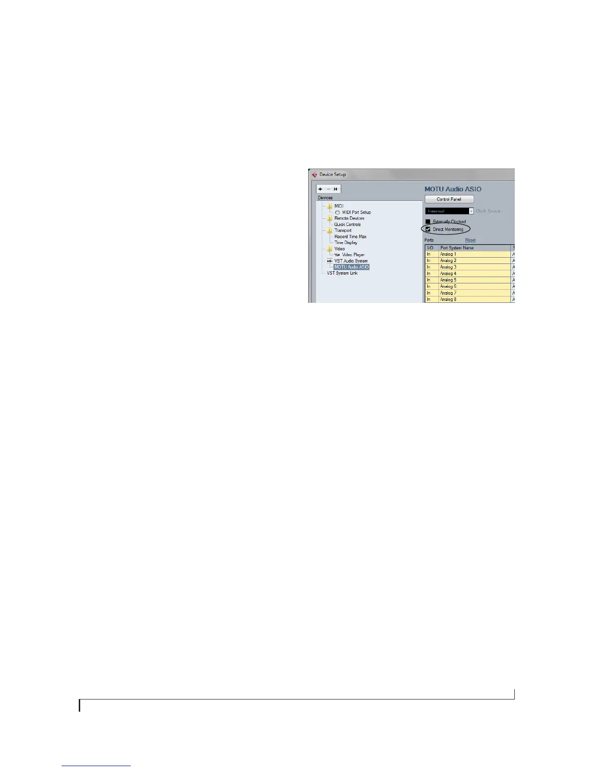 Figure 8-4: Activating the Direct Monitoring option in Cubase or