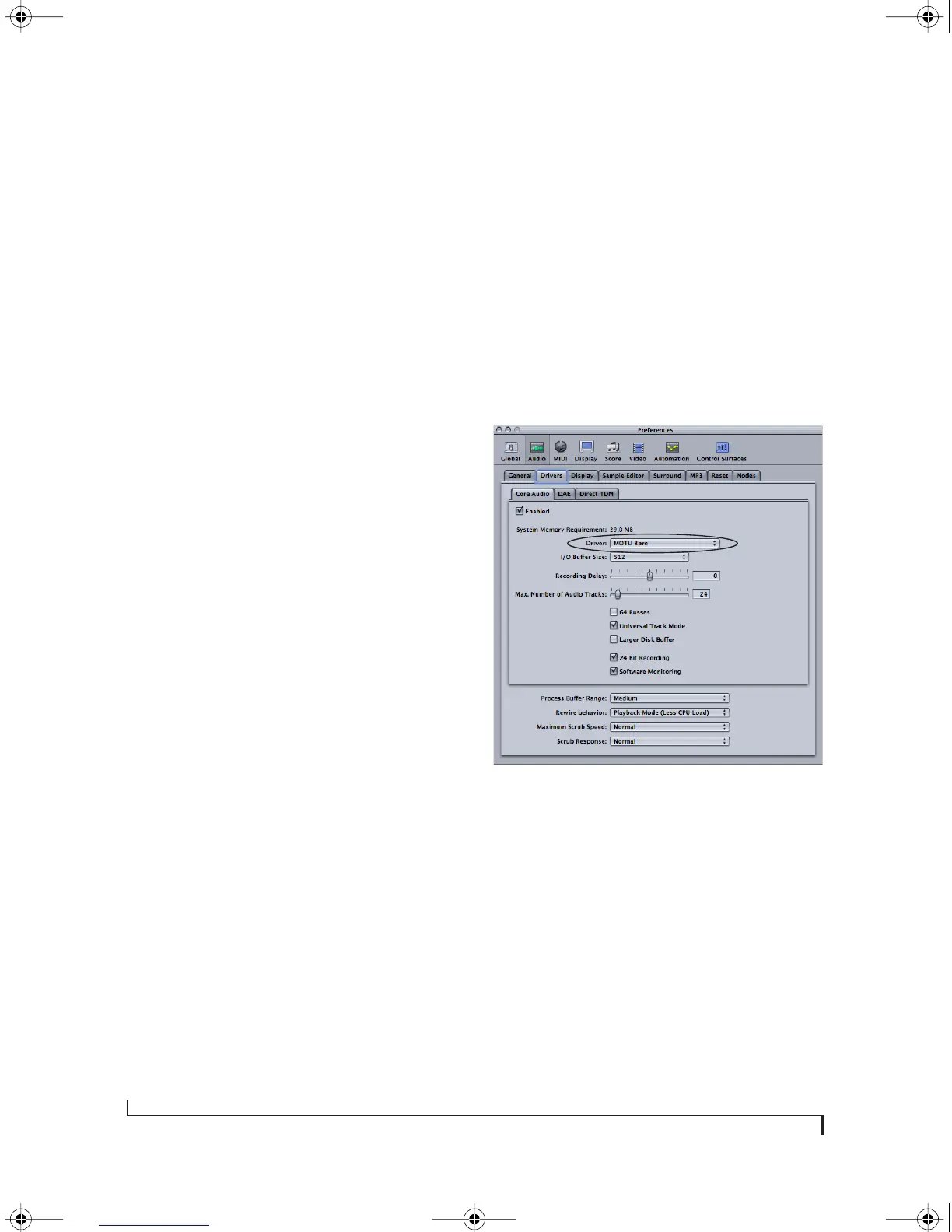 software and enable the MOTU 8pre CoreAudio