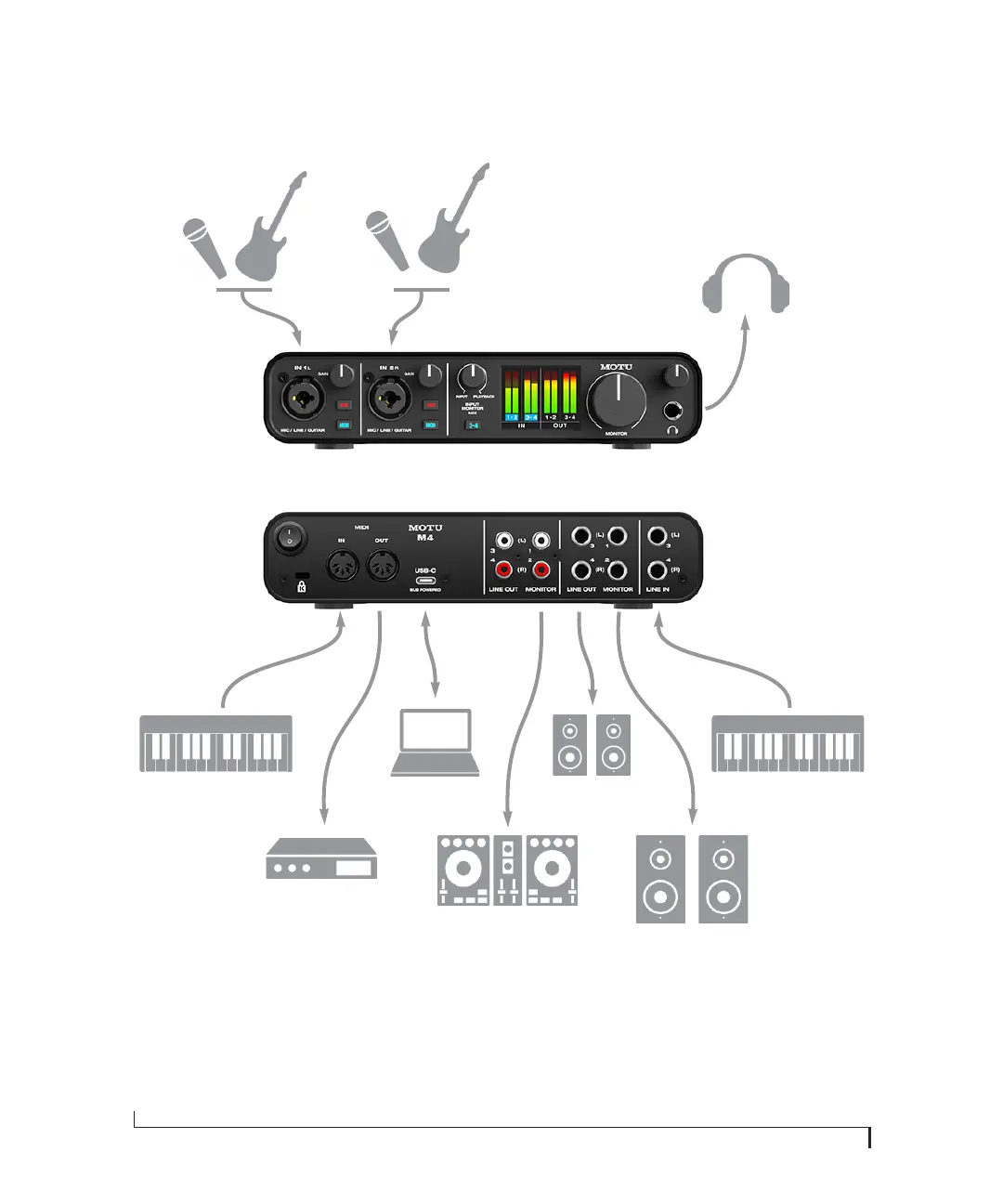 MOTU M2 - Typical M4 Studio Setup Diagram