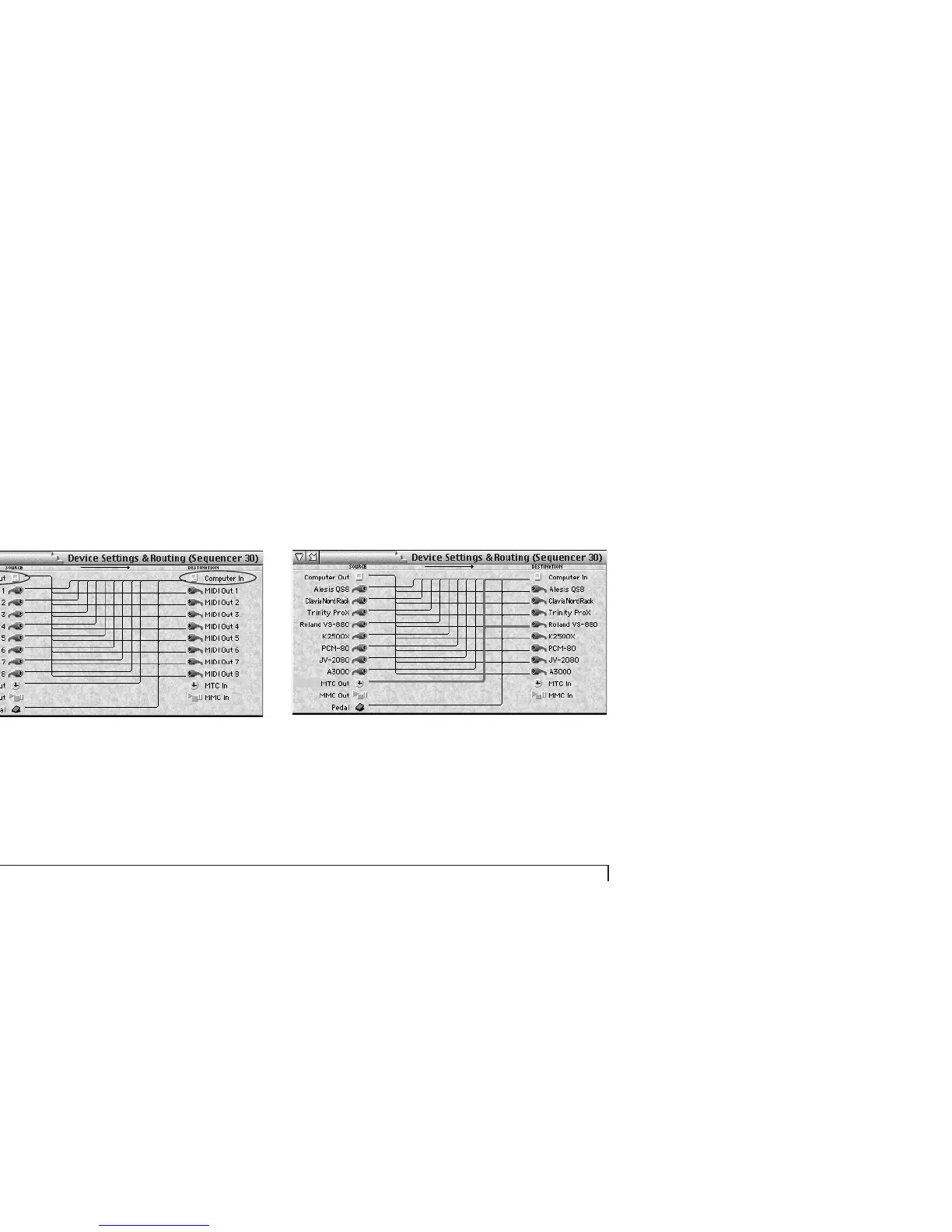 Figure 6-18: Editing computer connections. To route MIDI data to the computer,