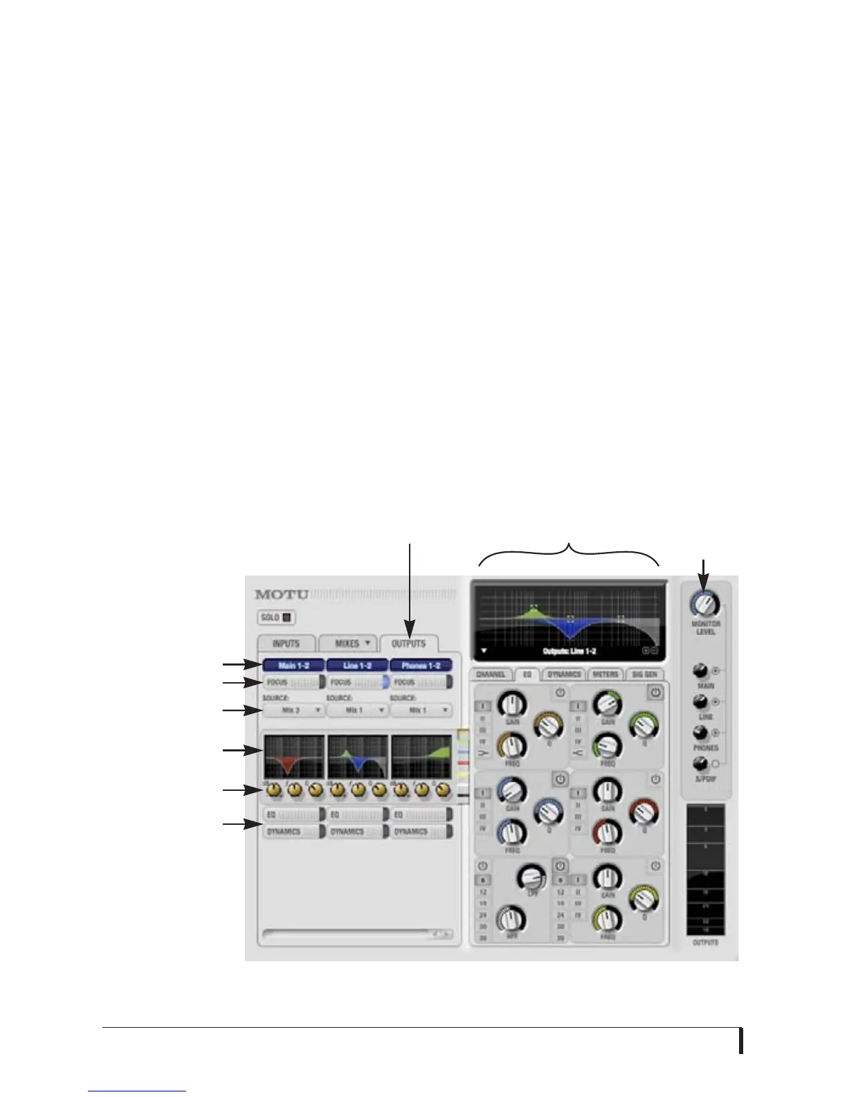 Settings in each Output tab channel strip
