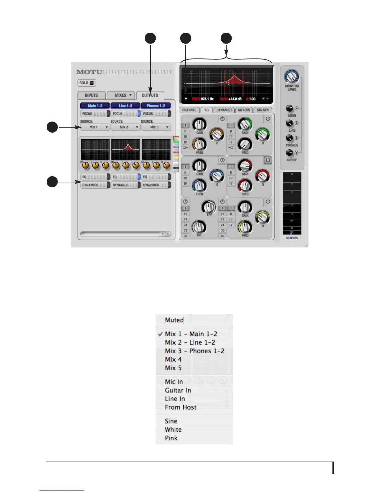 mixes for each output.