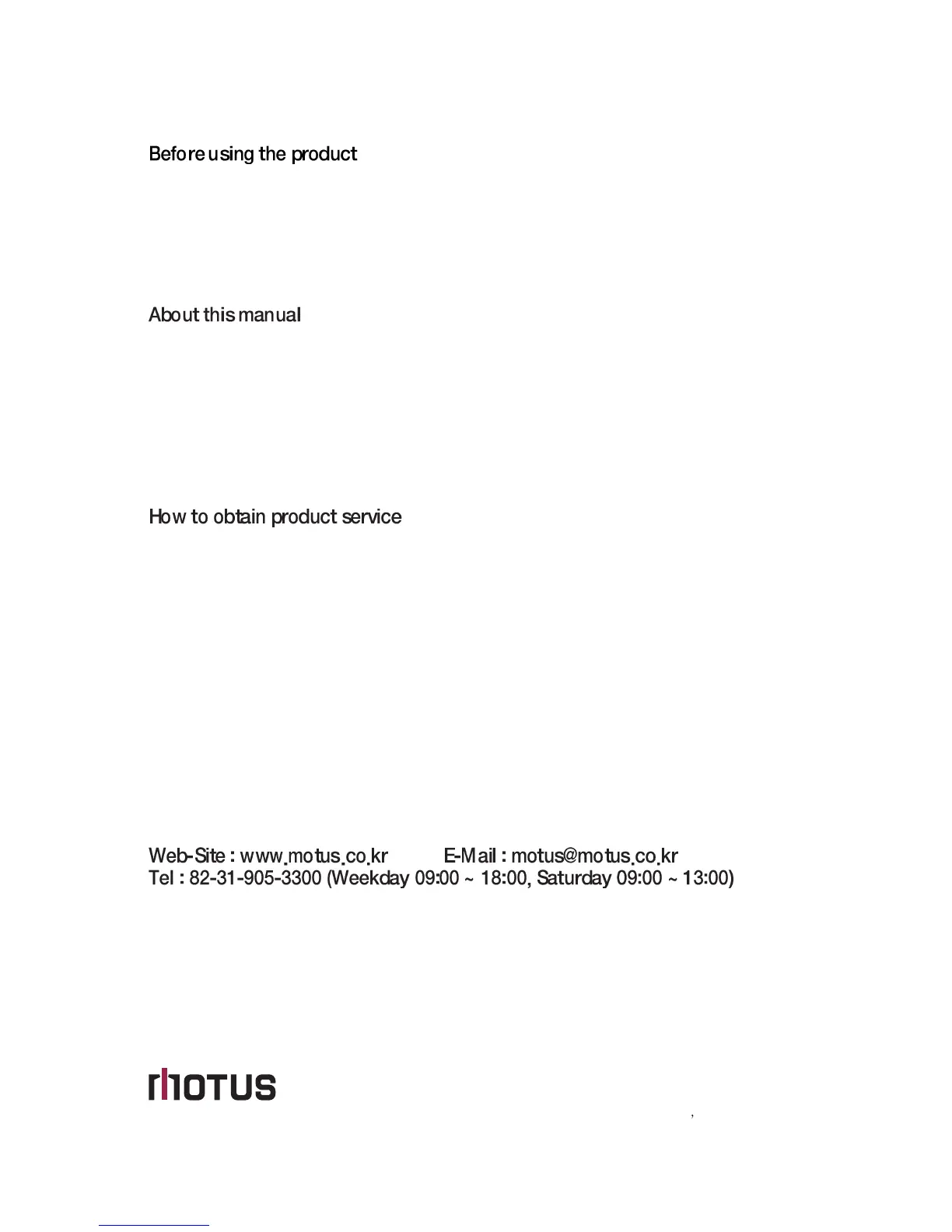 For information about the product, contact MOTUS customer service(Motus Customer Service) or