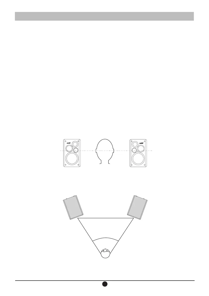 of 60 degrees with the listening position. The left and right speakers are