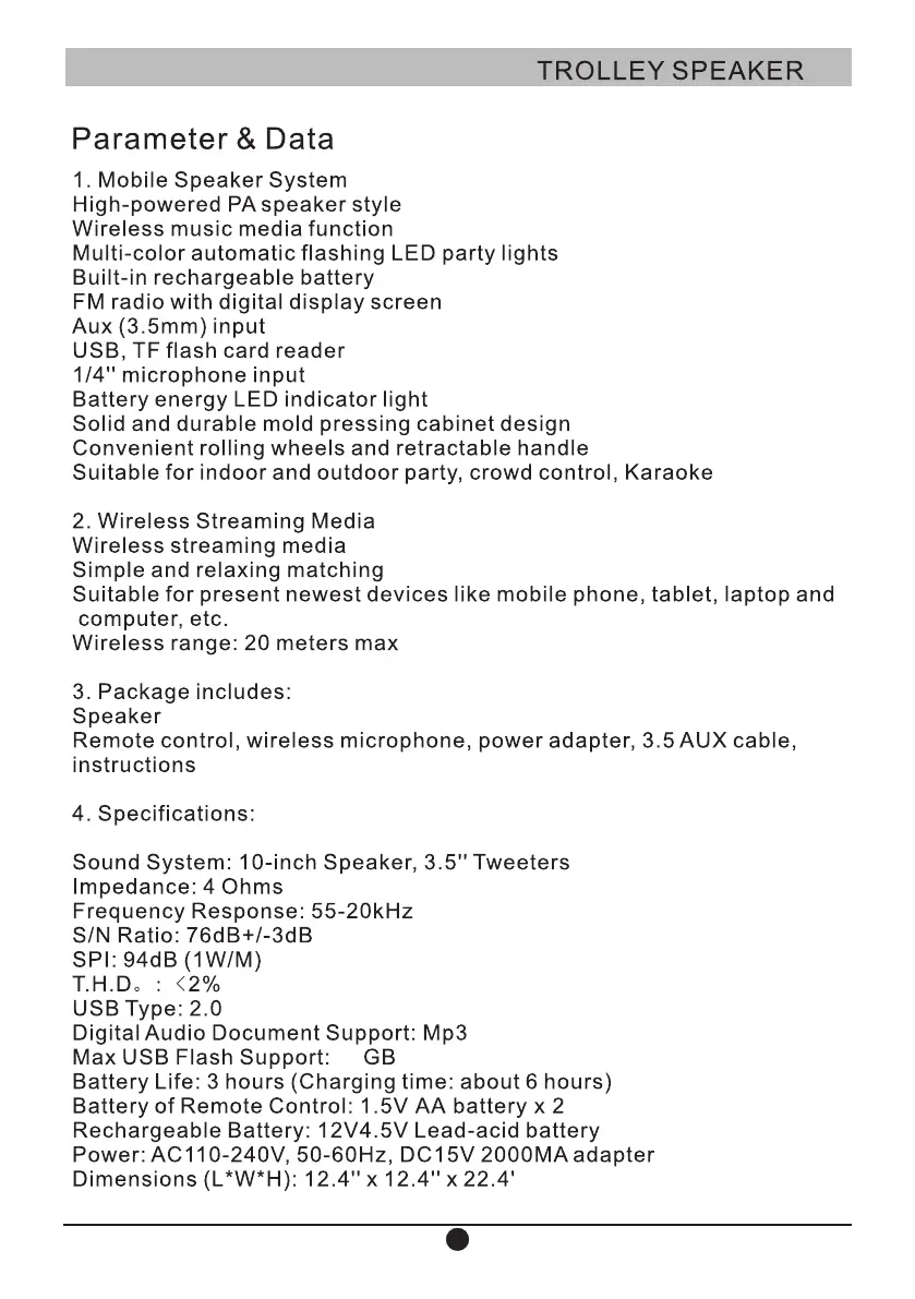 MouKey MTs10-1 - Product Specifications and Package Contents; Mobile Speaker System Features; Wireless Streaming Media Capabilities; Included Package Items