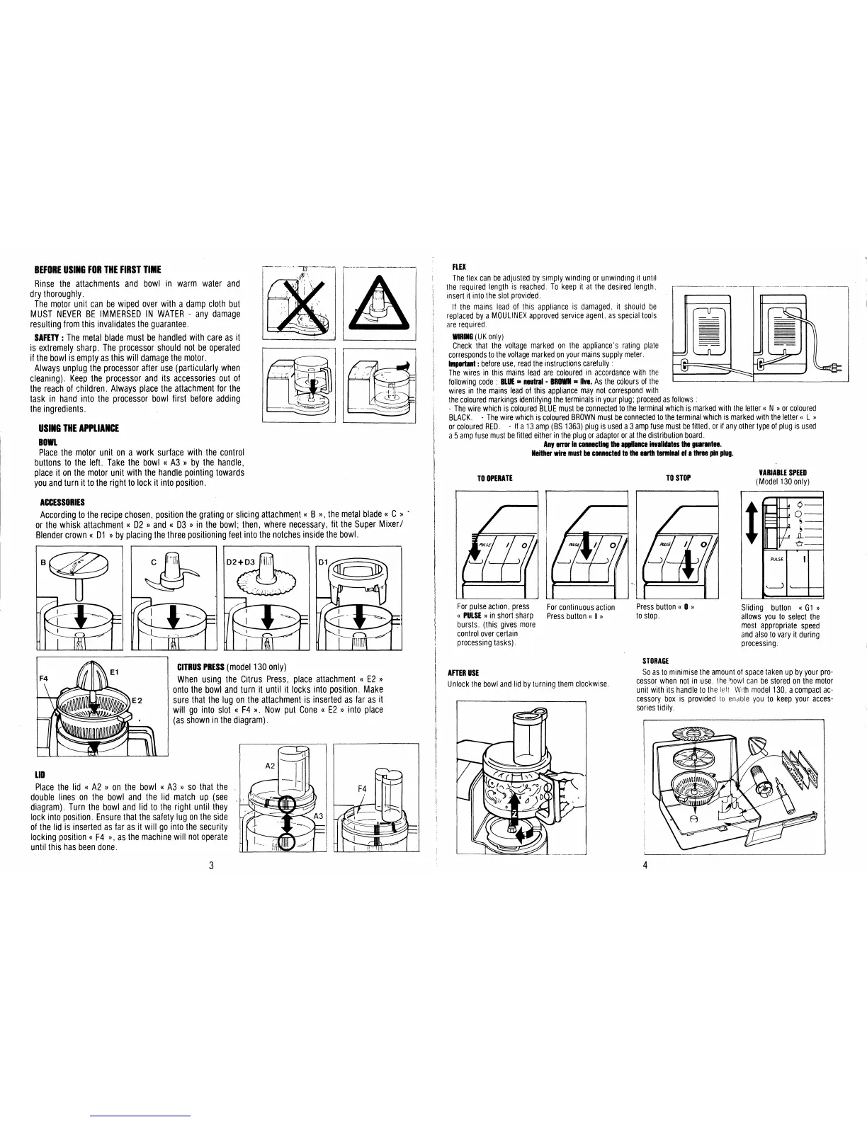 Moulinex 129 - First Use, Safety, and Operation Basics; Initial Cleaning and Safety Precautions; Appliance Controls and Variable Speed; Cord Management and Storage