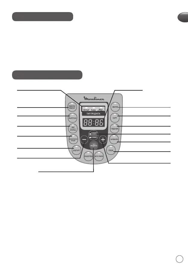 «Плов», «Пароварка», «Тушение», «Суп», «Жарка», «Отсрочка старта/таймер», «Тип