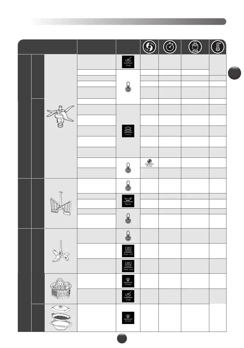 Steam cooking 5 to 60 mins 800g 100°C