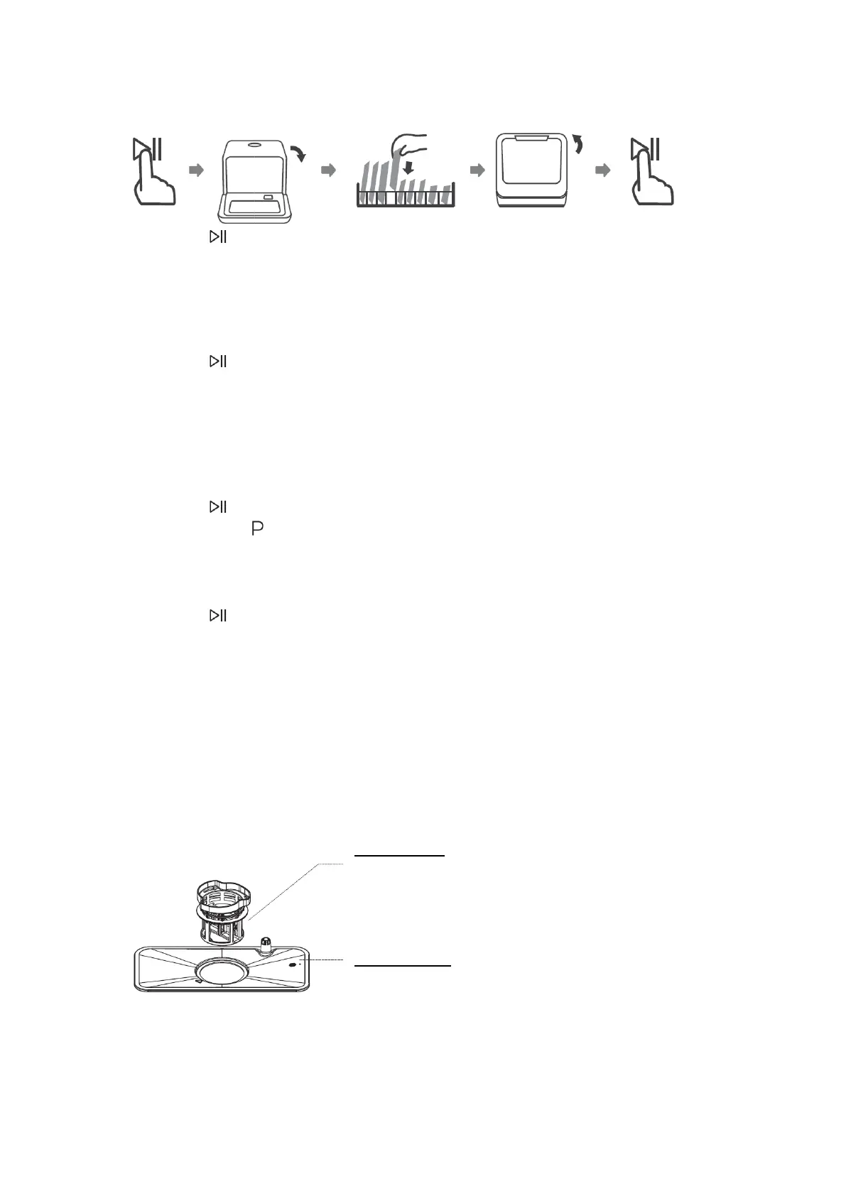 sproeier op de onderste sproeiarm en naar de afvoer