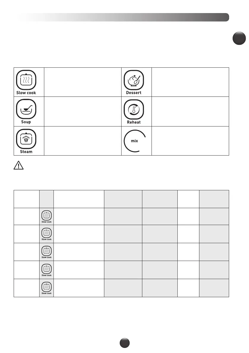 Speed, cooking temperature and duration are pre-programmed to make soups, stews, steamed dishes,