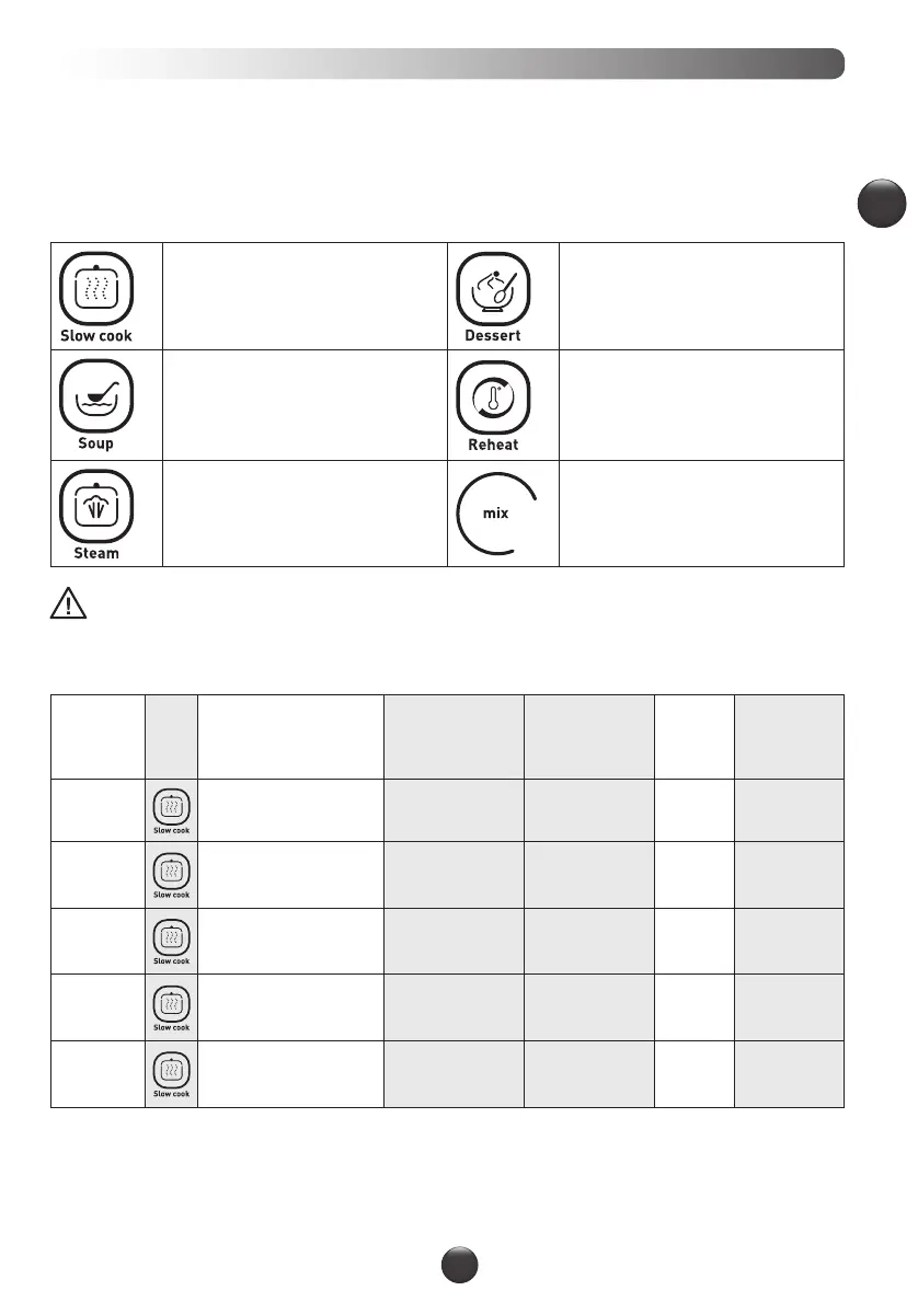 soep, stoofgerechten, desserts en stomen, of voor het opwarmen van uw gerechten. De kooktijd kan