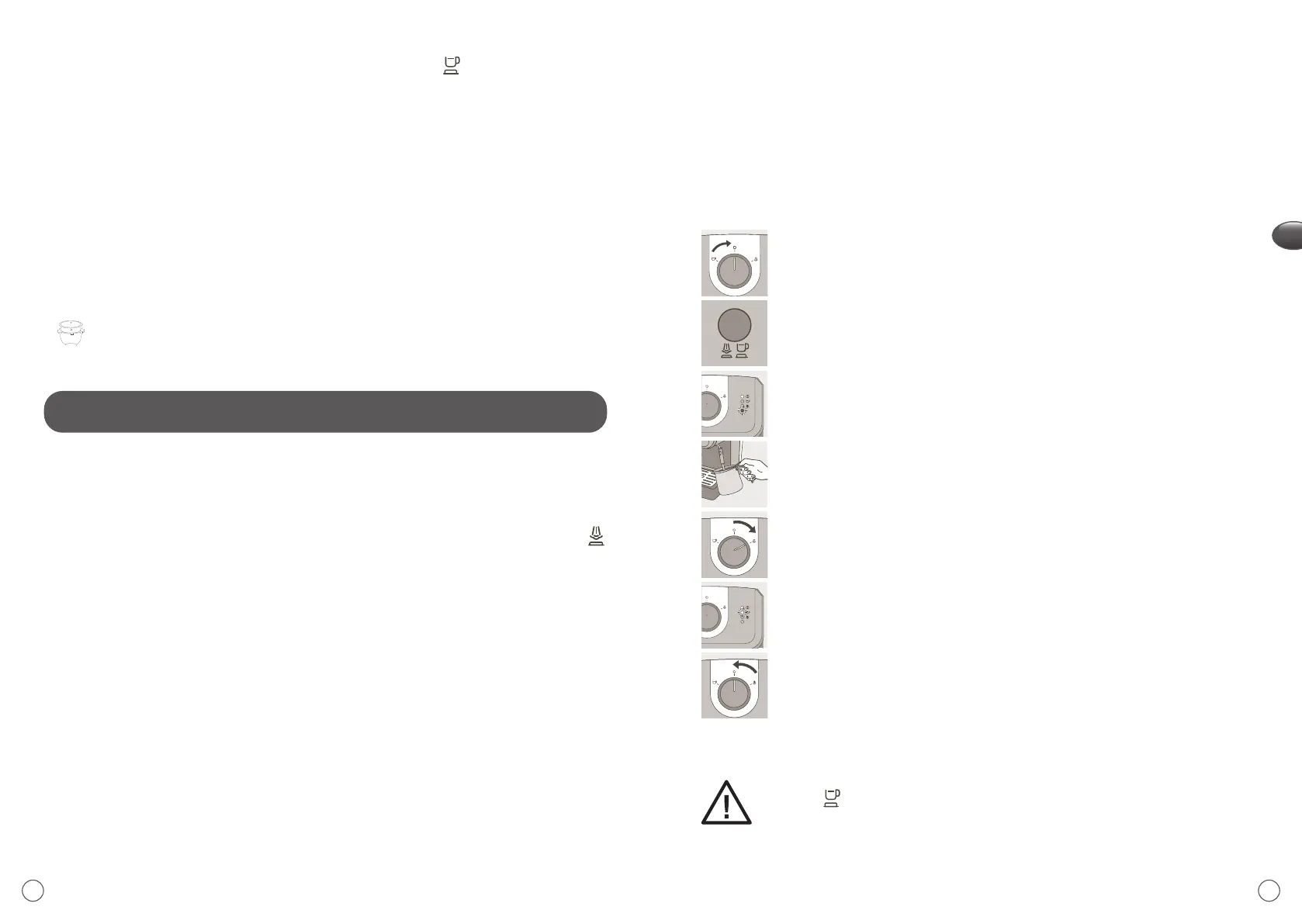 fordítsa a gombot jobbra (gőz fokozat), amíg a piros fény ki nem alszik.