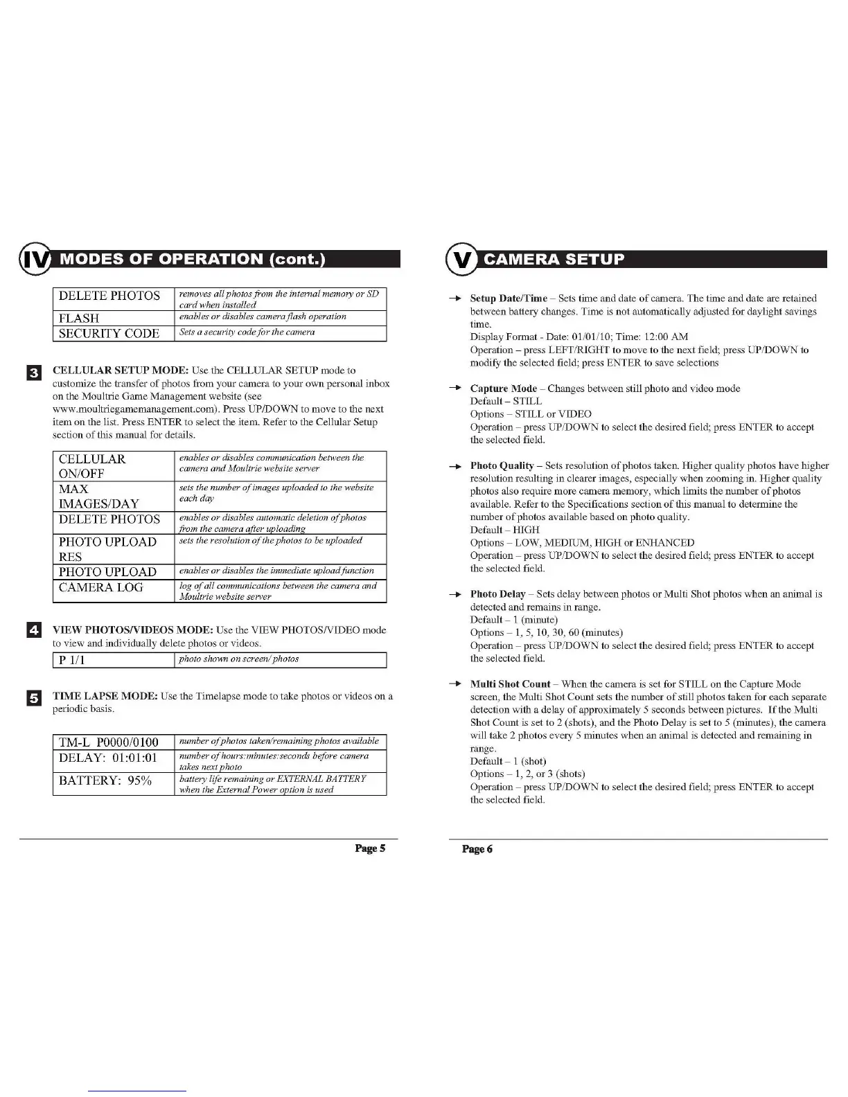 Moultrie GAMESPY I65 - Camera Setup; Cellular Setup Mode; View Photos;Videos Mode; Time Lapse Mode