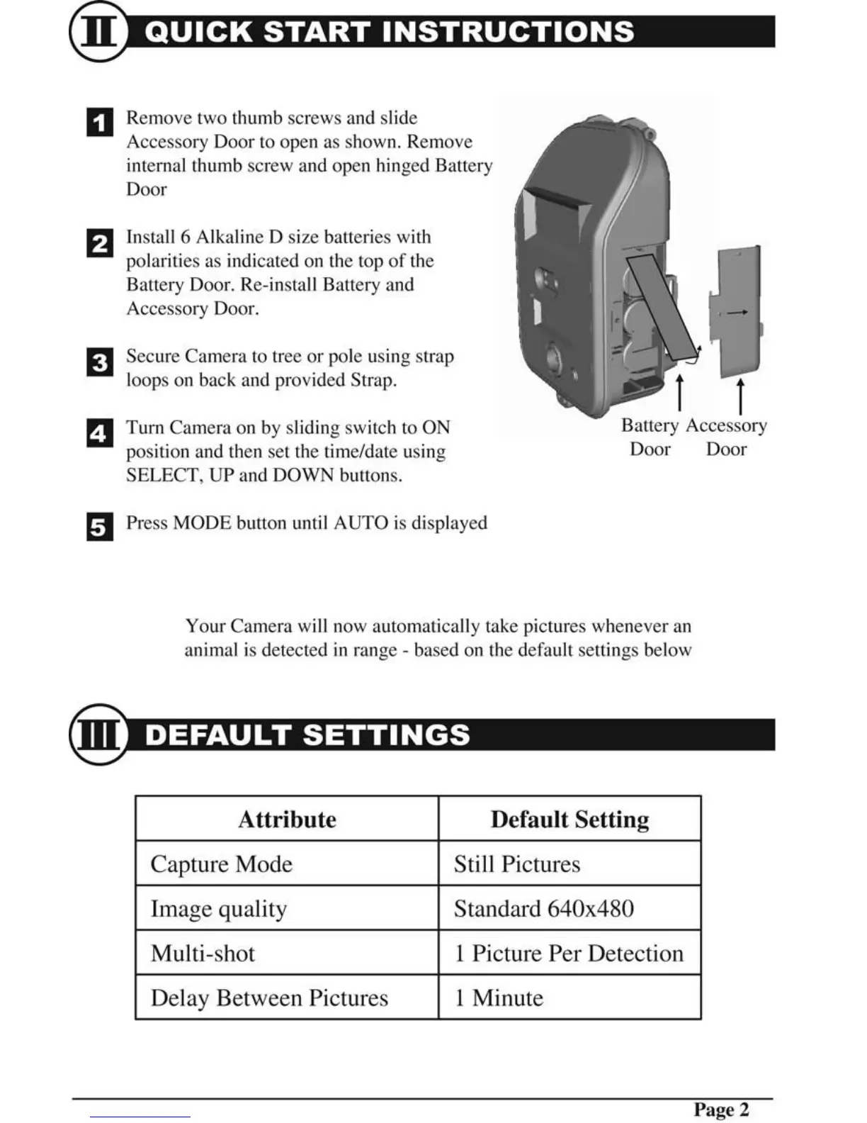 Moultrie M40 - Quick Start Instructions; Install Batteries; Mount Camera; Power On and Set Time;Date
