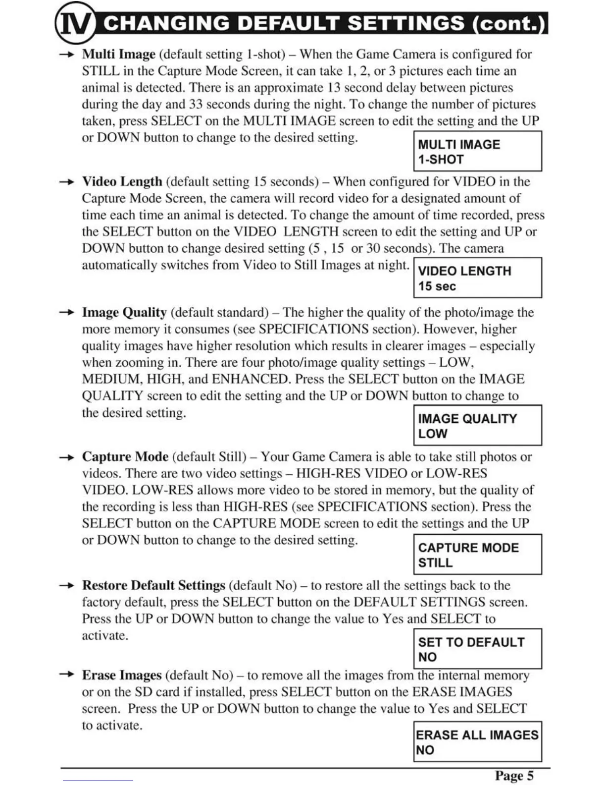 Moultrie M60 - Multi Image; Video Length; Image Quality; Capture Mode
