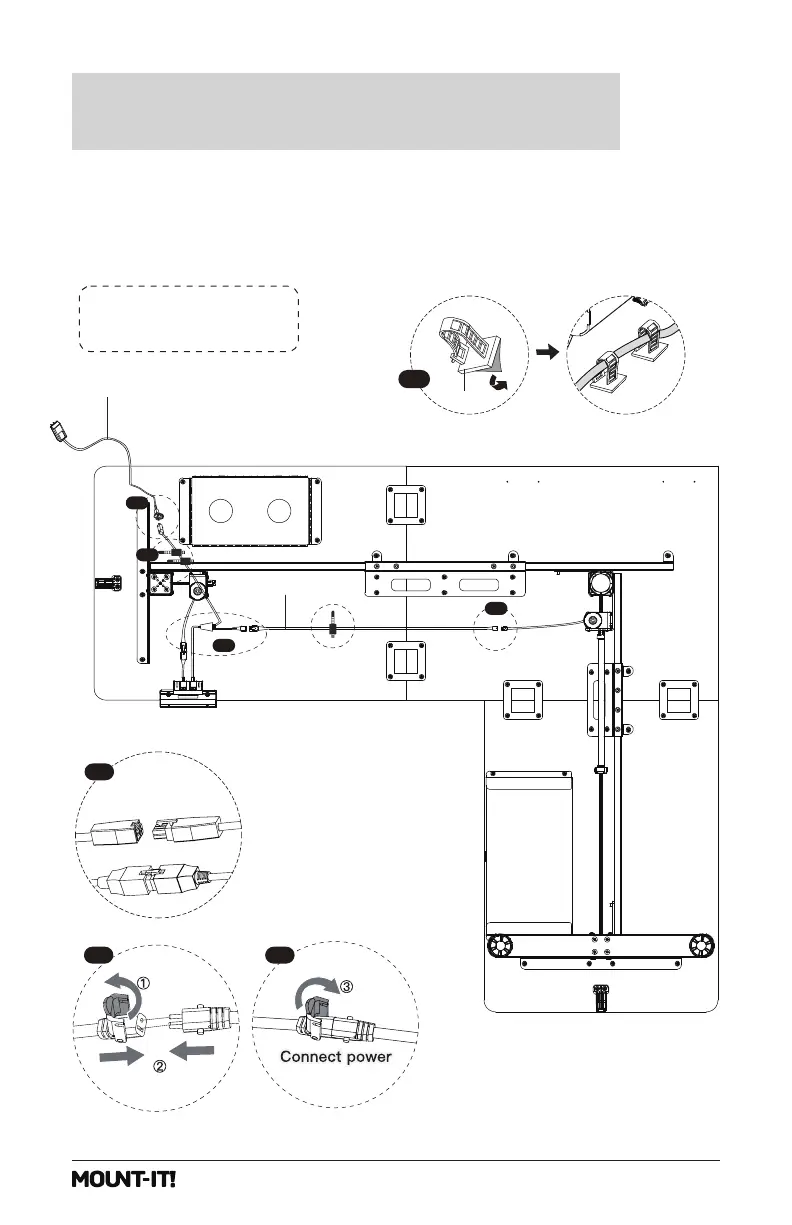 Attach the Cable Clips (#g) to the underside of the desktop as needed. It is recommended that they