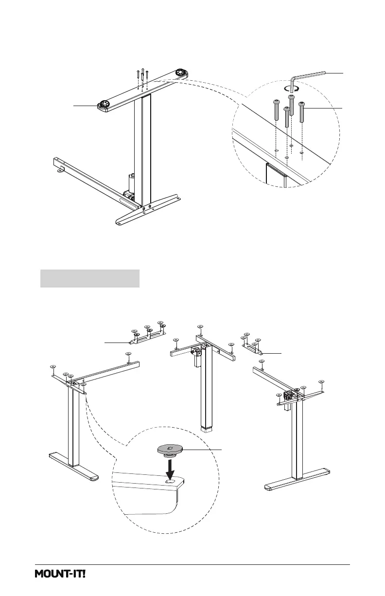 Turn the desk over so that it is standing on the feet. Attach the Rubber Pads (#h)