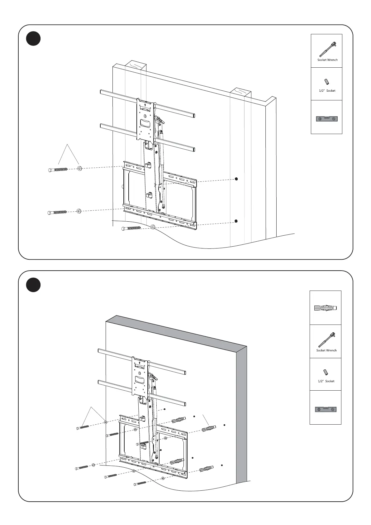 Insert the Concrete Anchors (#I) into the drilled holes, then install the assembled arm to