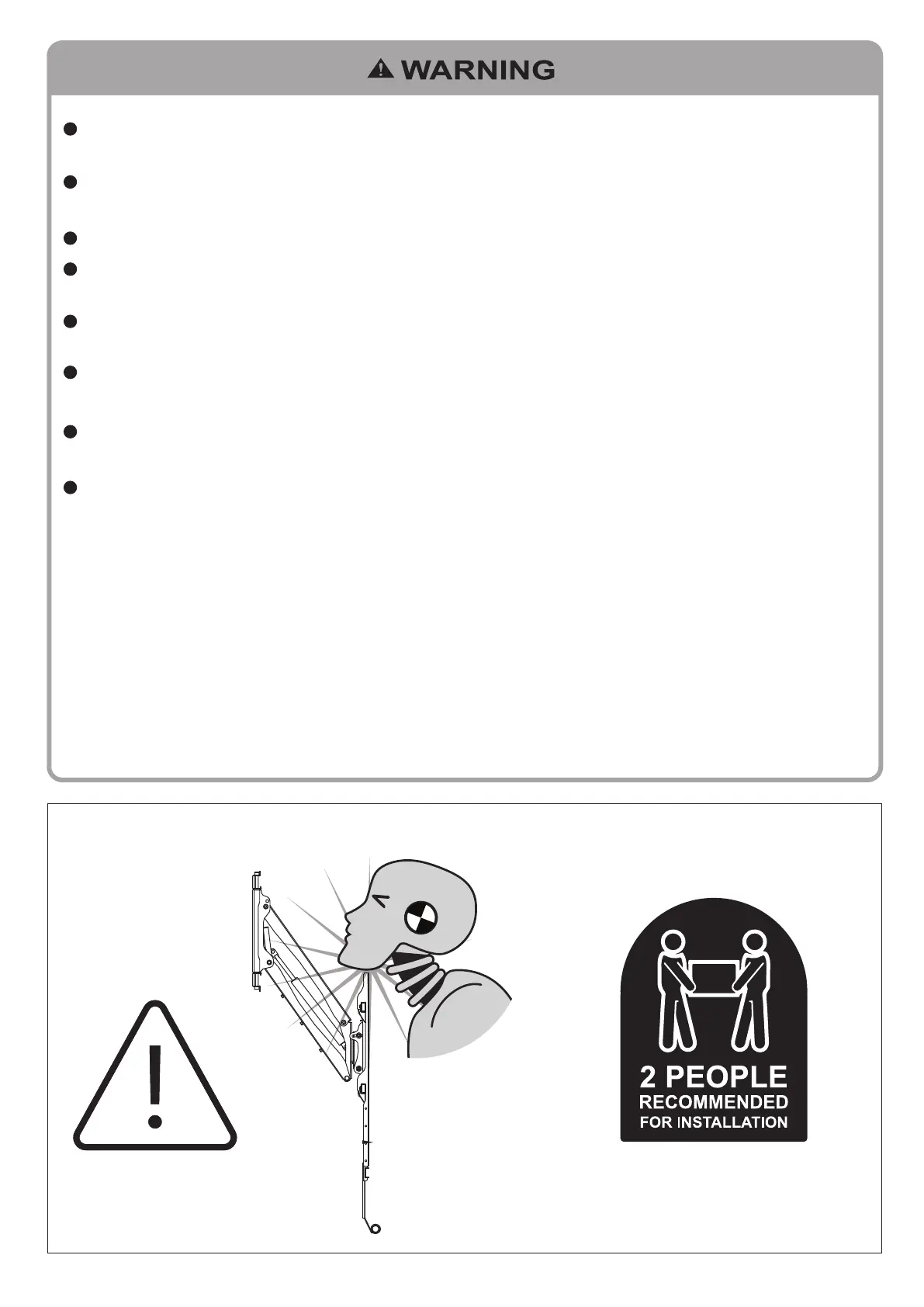 This bracket should only be installed by two people. Do not attempt to install it by