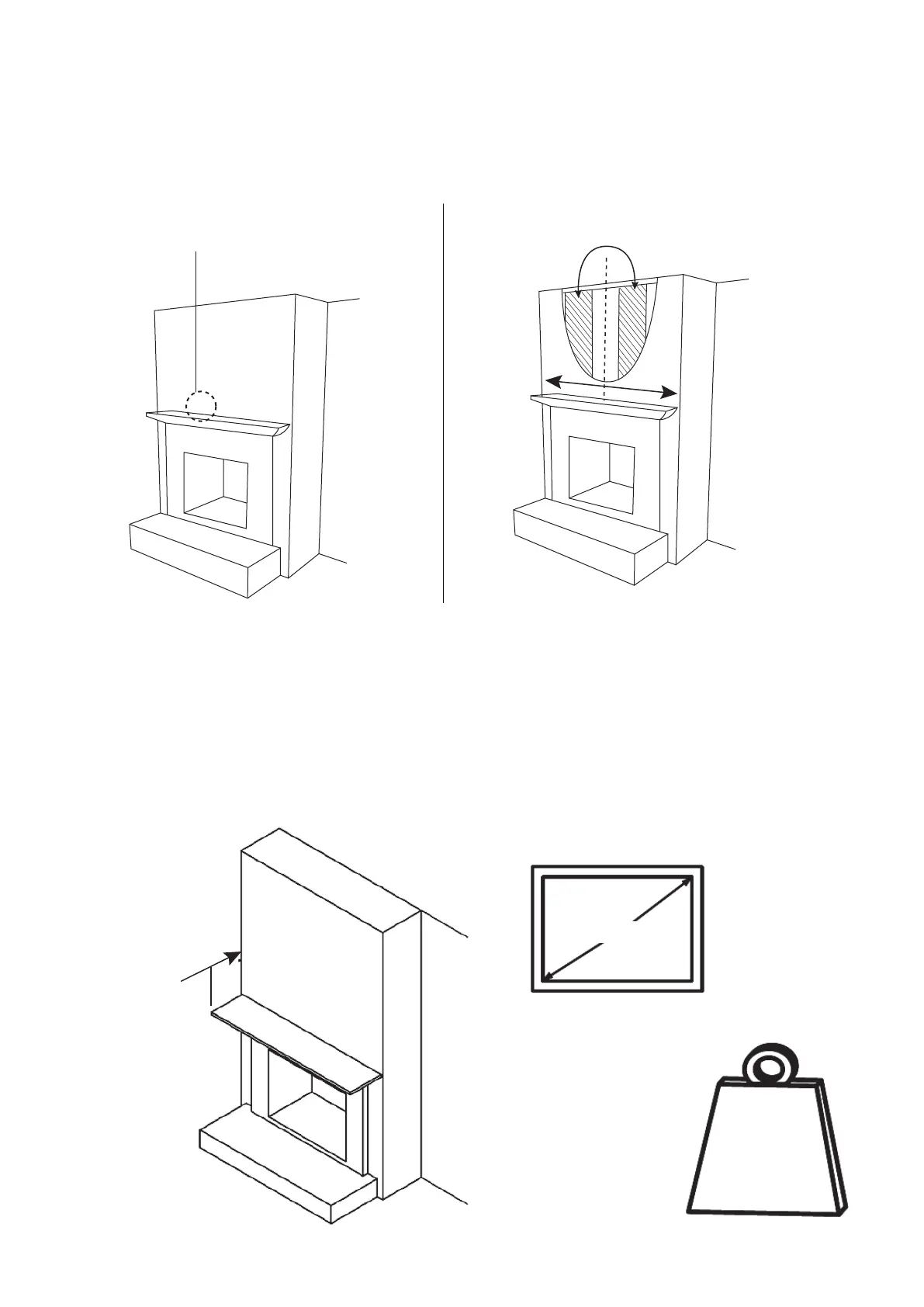 1. The temperature at the front of the fireplace mantle must never exceed 100°F (38°C).