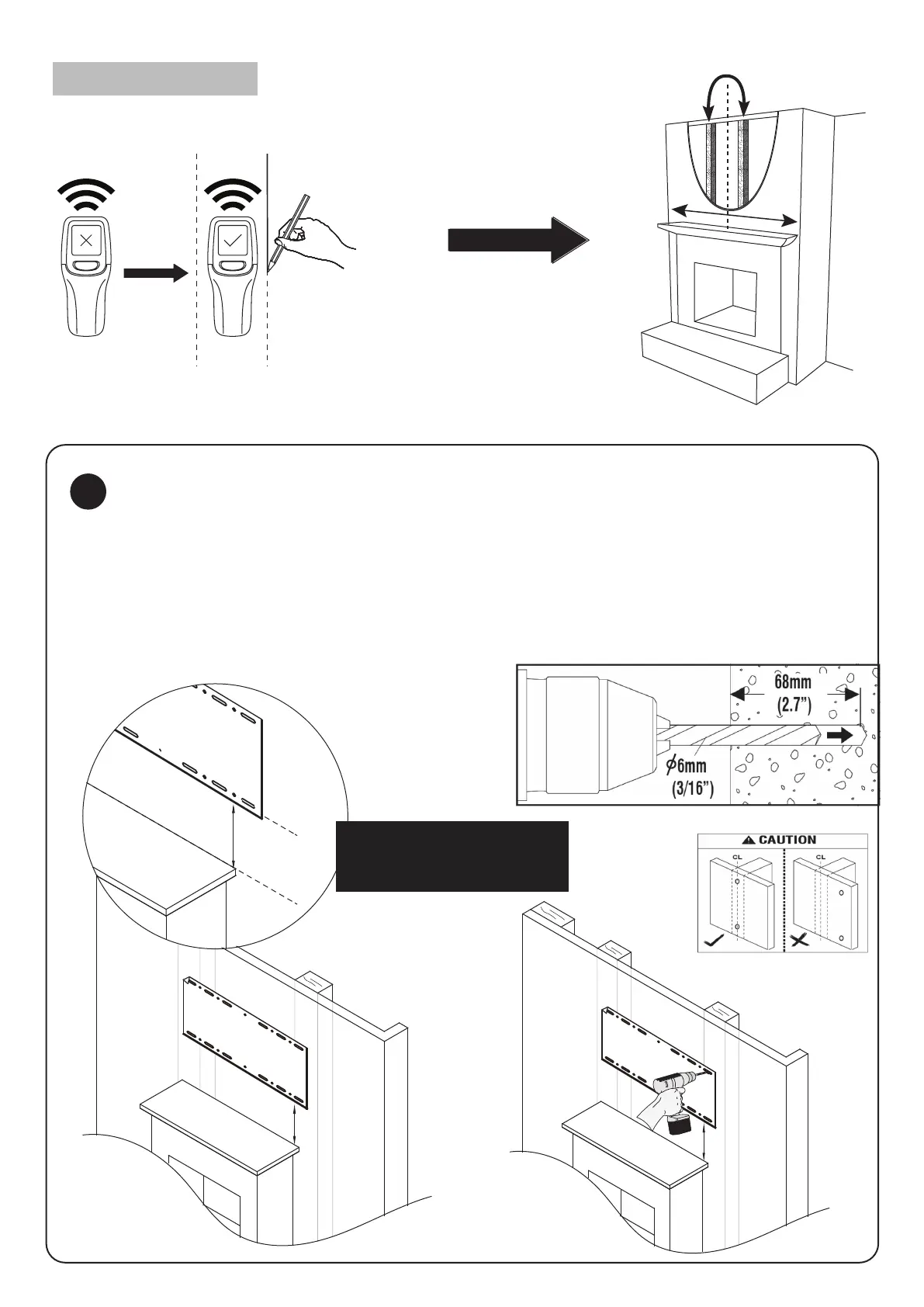 studs. Drill the pilot holes using a 3/16in drill bit to a depth of 2.7”.