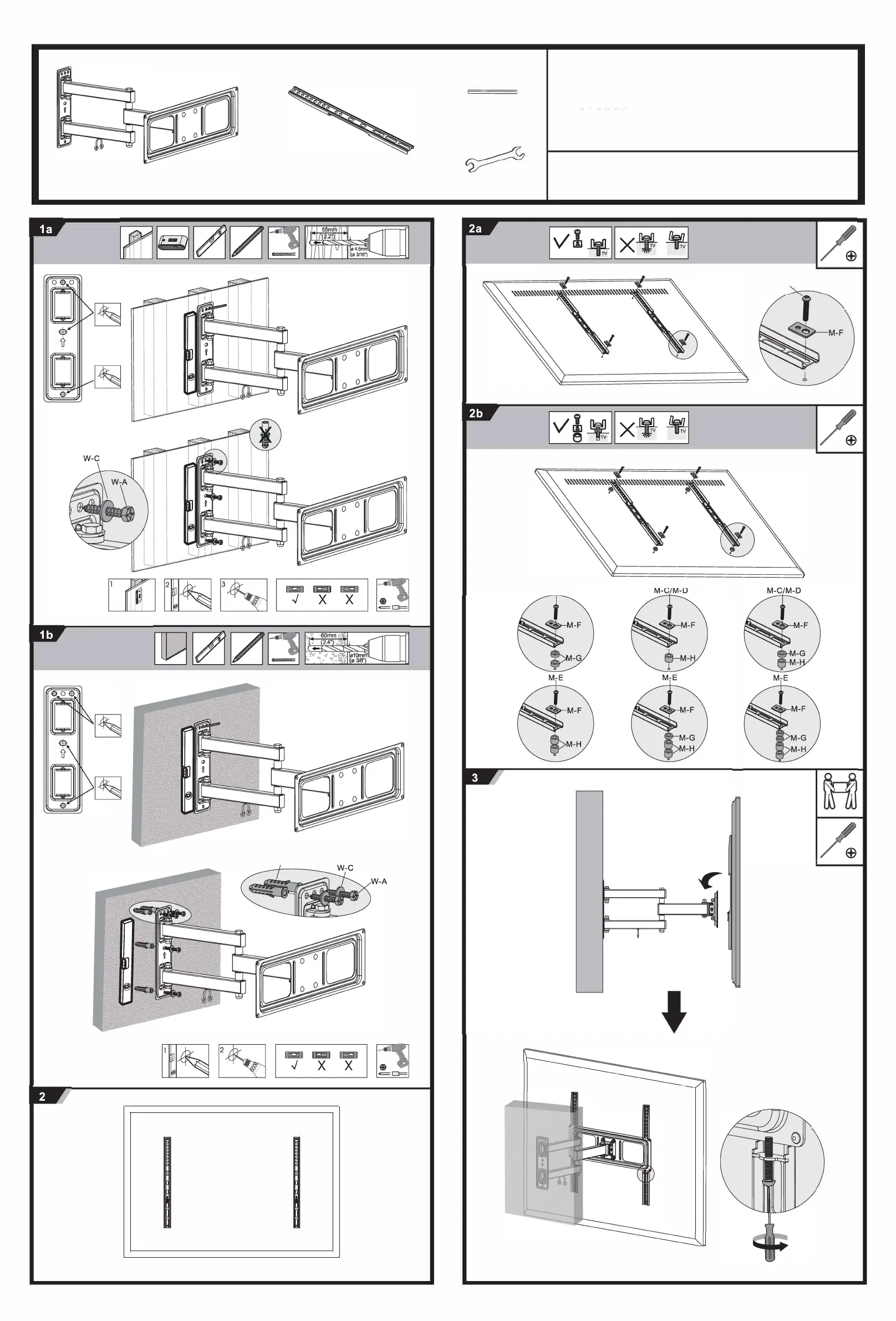 Mount-It! MI-3991B - Installation Steps; Step 1 a: Mount Assembly; Step 1 b: Wall Mounting; Step 2 a: Attaching Brackets to TV