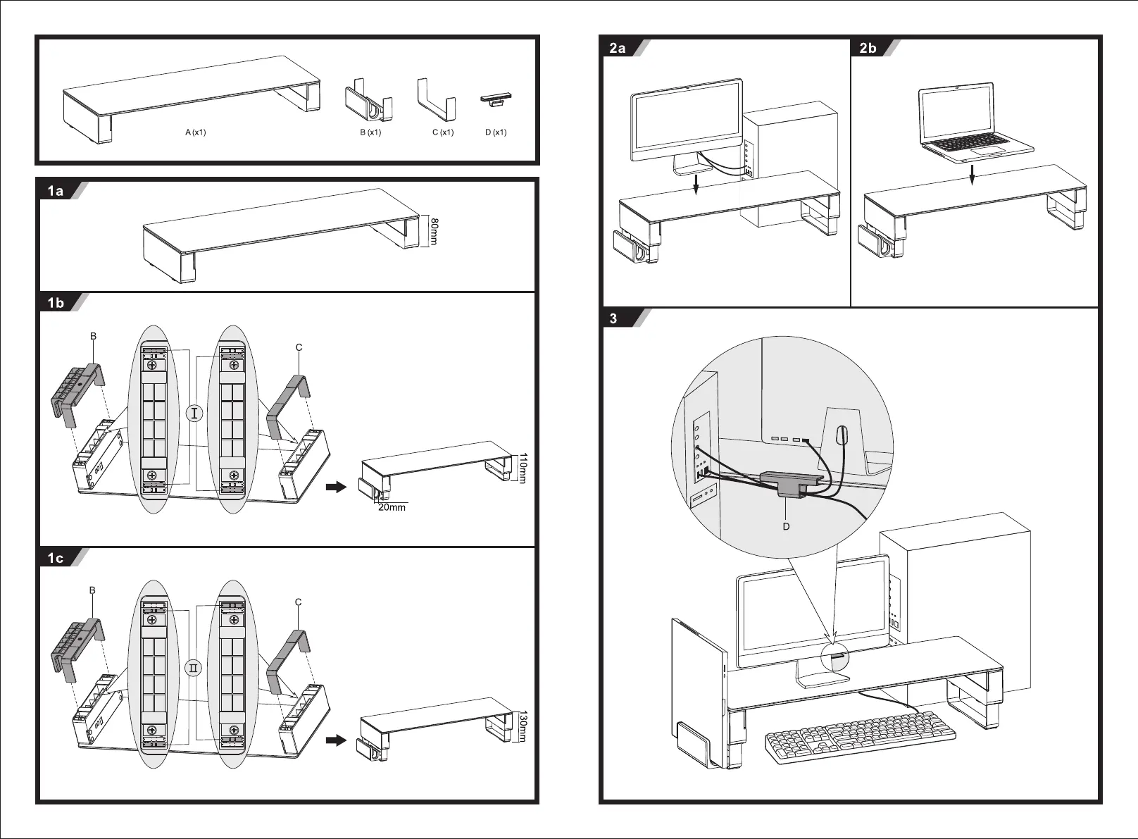 Mount-It! MI-7264 - Stand Components and Assembly; Stand Component Identification; Step-by-Step Stand Assembly; Functional Setup and Cable Management