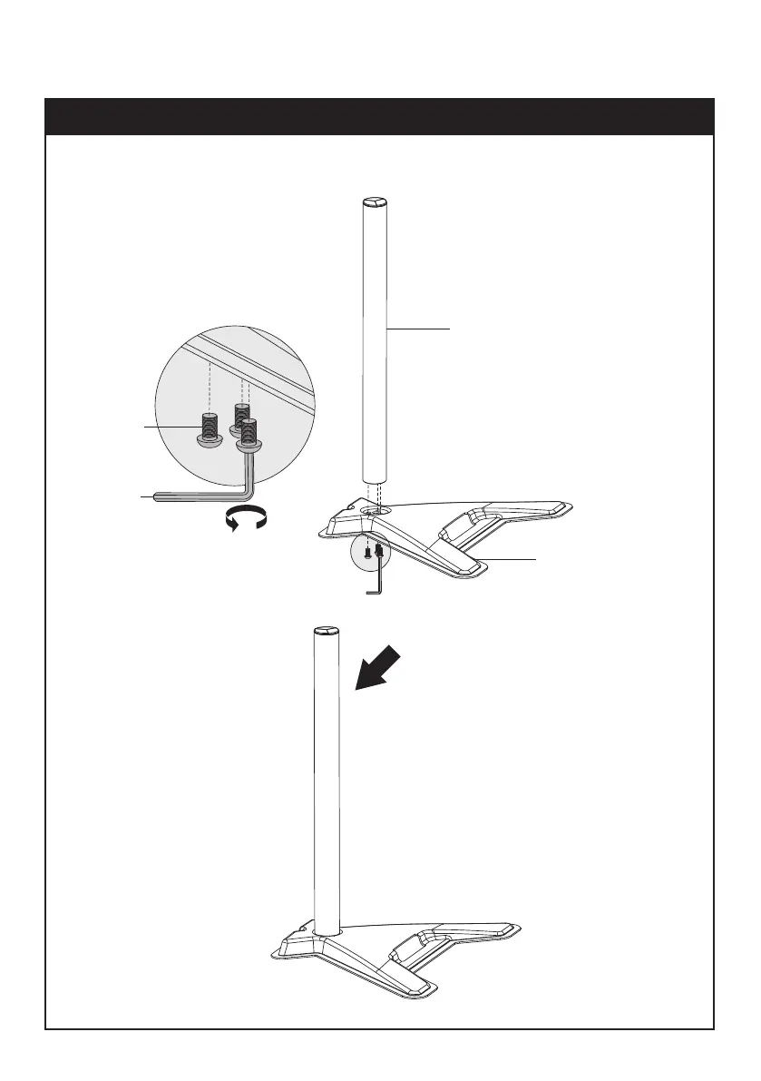 Use the 4mm Allen Key (J) to tighten the screws (F) into the pole (D) from the bottom of the base (C).