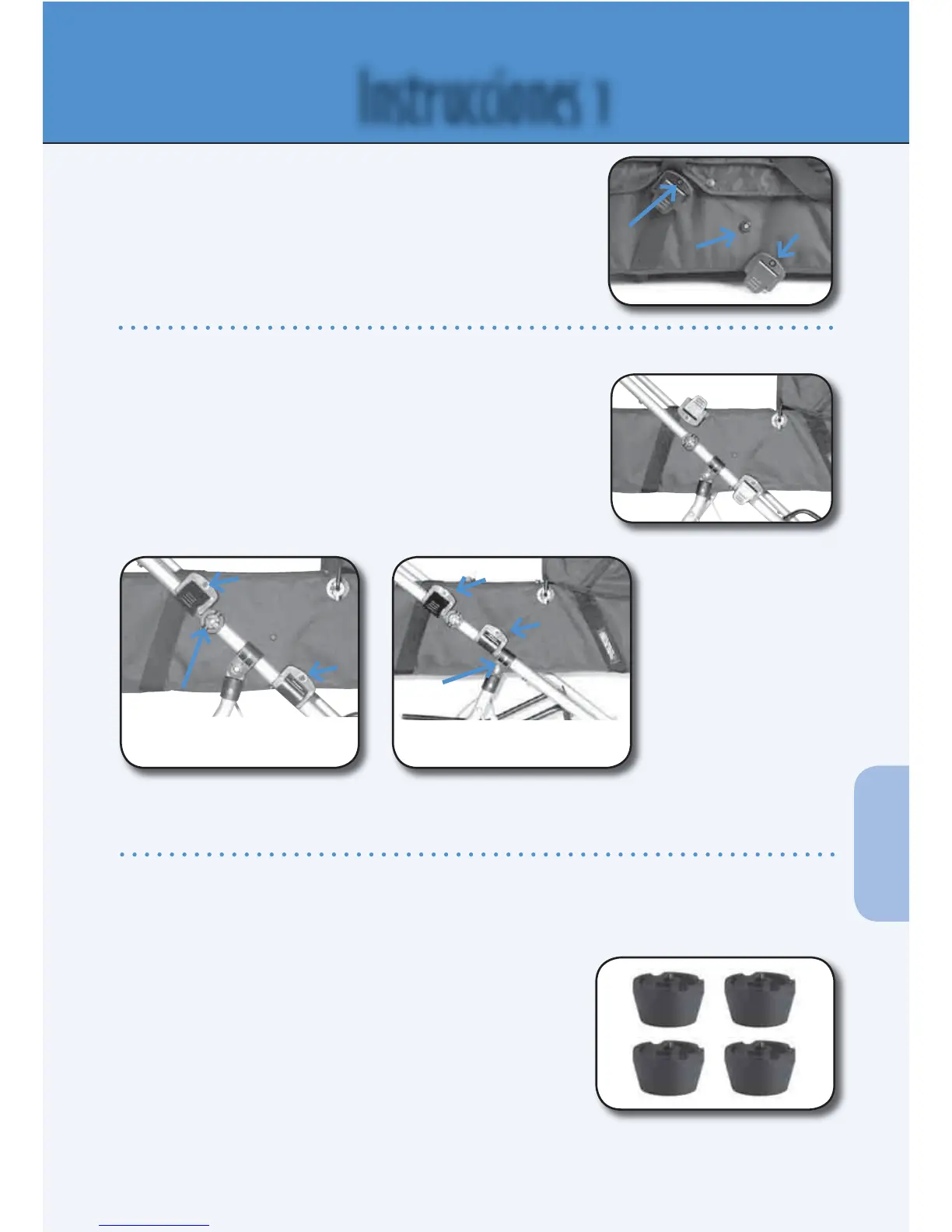 patas) situados debajo de la cuna portable.