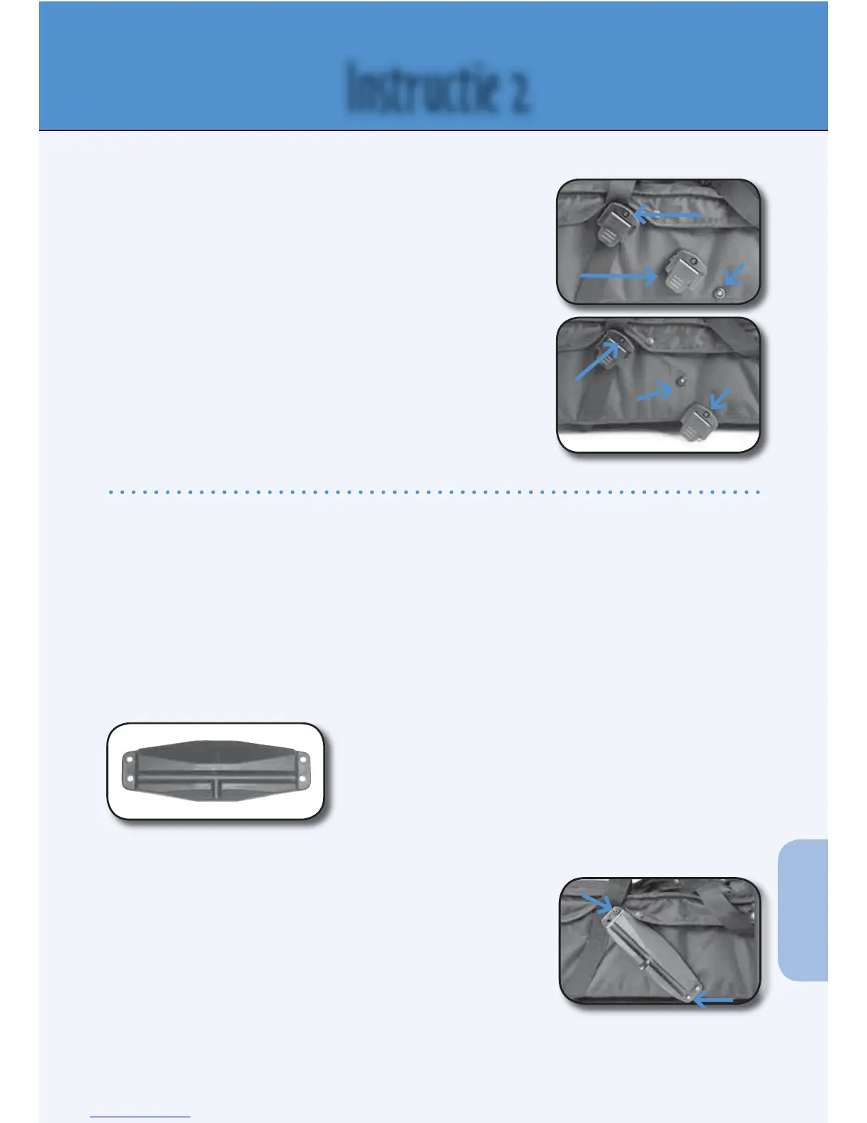 • Plaats van de schuifplaat op tegenovergestelde kant van de reiswieg op de