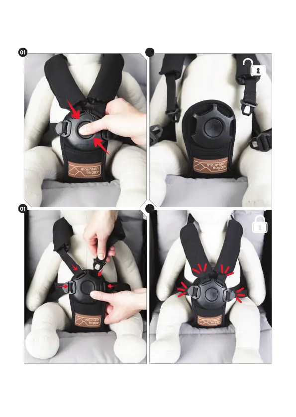 Mountain Buggy Mini - Operating Harness Buckle; Buckling the Harness; Unbuckling the Harness