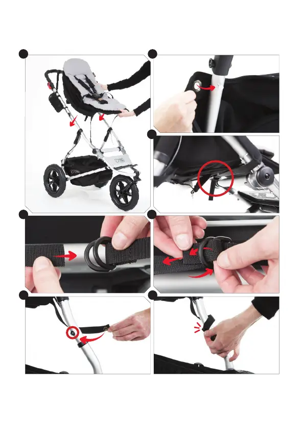 Mountain Buggy Mini - Footrest Strap Adjustments; Attaching Footrest Straps; Adjusting Footrest Position